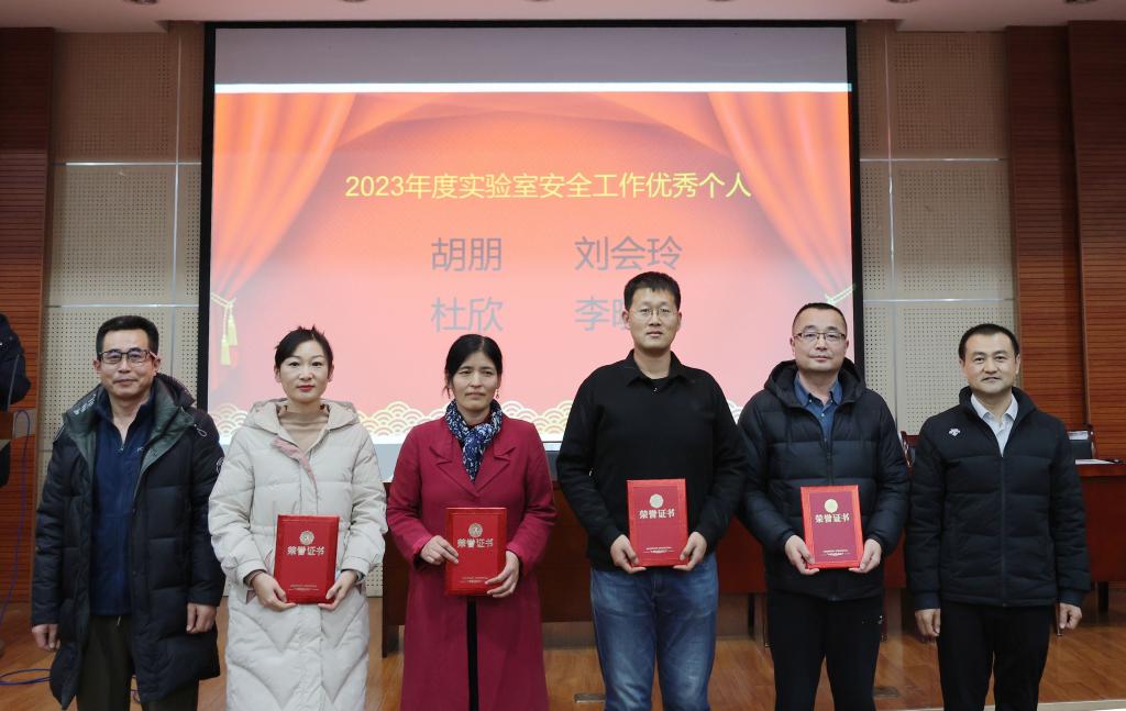 大会伊始,教务处处长唐玉海介绍了召开实验室安全会议的背景和意义。由实验室安全工作领导小组办公室冯鹏林从实验室安全建设基本情况、安全隐患整改工作向大会作2023年度实验室安全工作汇报。随后,唐玉海处长宣读《威尼斯7798cc关于表彰2023年度实验室安全工作优秀个人的表彰决定》,陈书荣、岳华海副校长为荣获实验室安全工作优秀个人称号的胡朋、杜欣、李晓帆、刘会玲四位教师颁发荣誉证书。