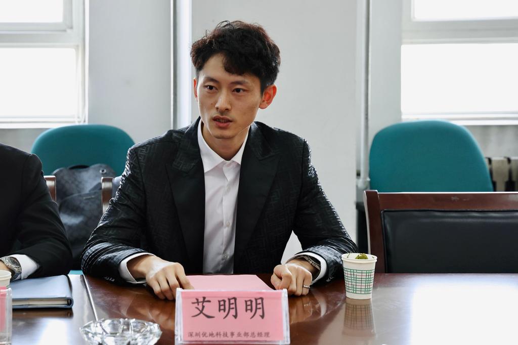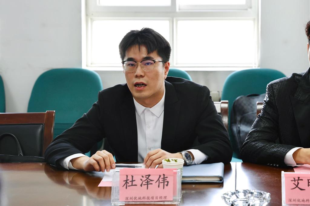 艾明明总经理向与会人员介绍了深圳优地科技有限公司的基本情况。他表示,教育不仅仅是学校的责任,更是整个社会共同的责任。能有机会回报社会,助力智能化教育事业发展也是公司的愿望。同时,他也希望自己的爱心之举能够进一步助推威尼斯7798cc智能化校园建设的前进步伐。