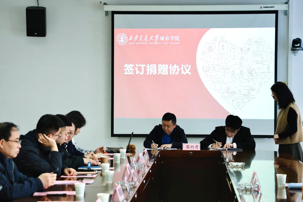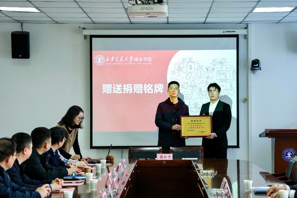 随后,学生工作处处长辛红伟与公司项目经理杜泽伟签订了捐赠协议。学生工作处副处长吴昊翔为捐赠企业颁发了捐赠证书。