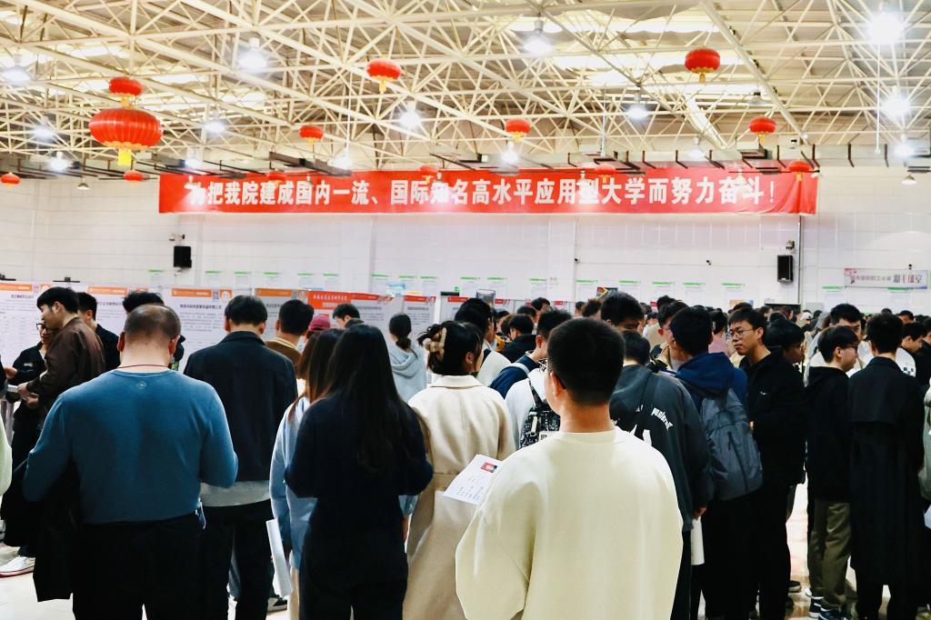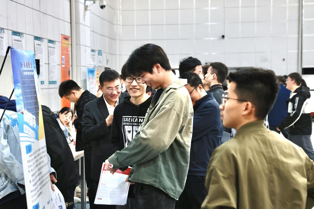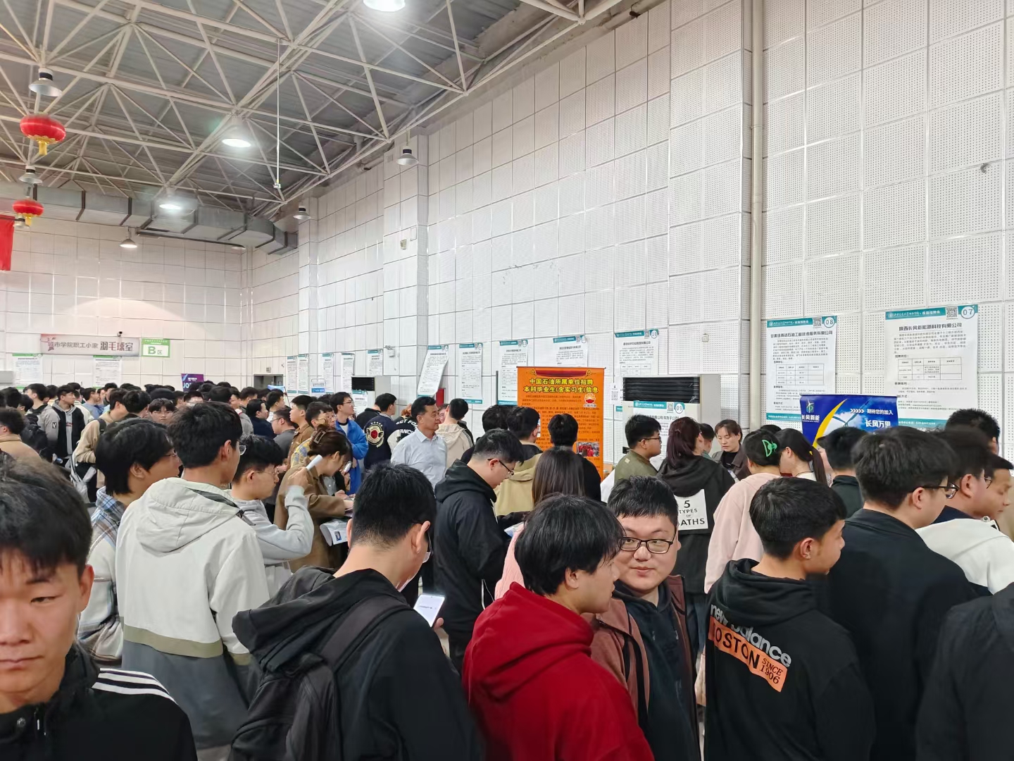 招聘会现场人头攒动,井然有序。毕业生们拿着精心制作的简历,选择自己感兴趣的企业进行交流和简历投递,气氛十分热烈。一些热门企业的展位前还排起了长队,等待与用人单位进一步对接洽谈。