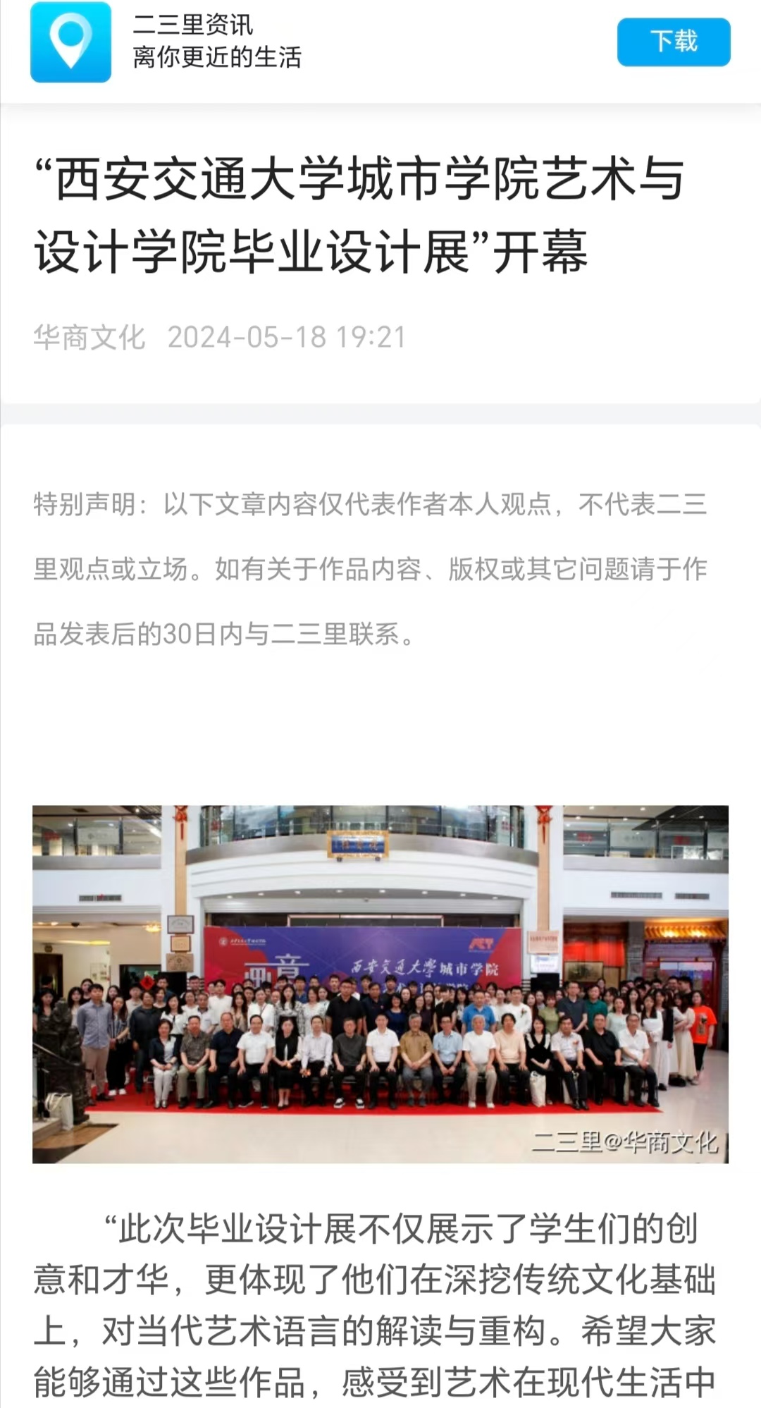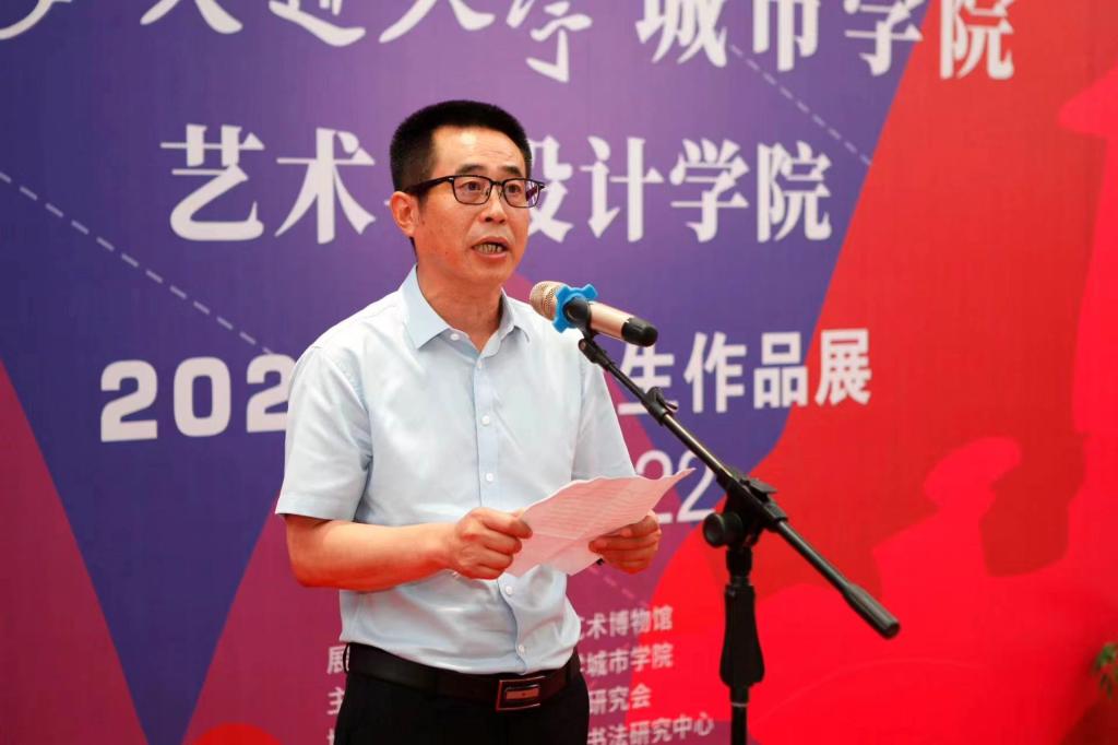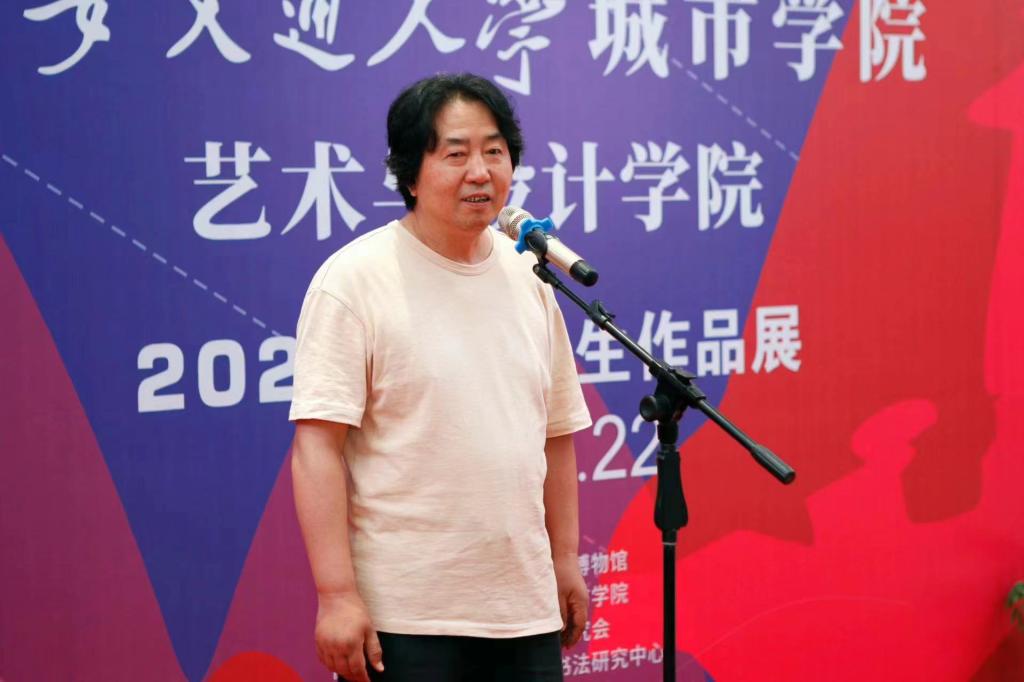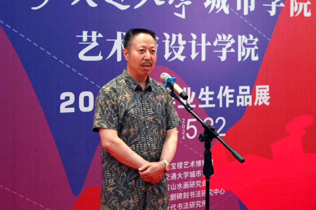 随后,西安美术学院副院长、陕西省美术家协会副主席屈健教授致辞:“在当今这个快速发展的时代,艺术的表现形式也在不断变化。通过这些作品,我们可以看到学生们如何将传统艺术与现代设计理念结合,创造出既有文化深度又具时代感的作品。这种对传统的深挖和对当代艺术语言的重构,正是我们所期望的艺术创新方向。”