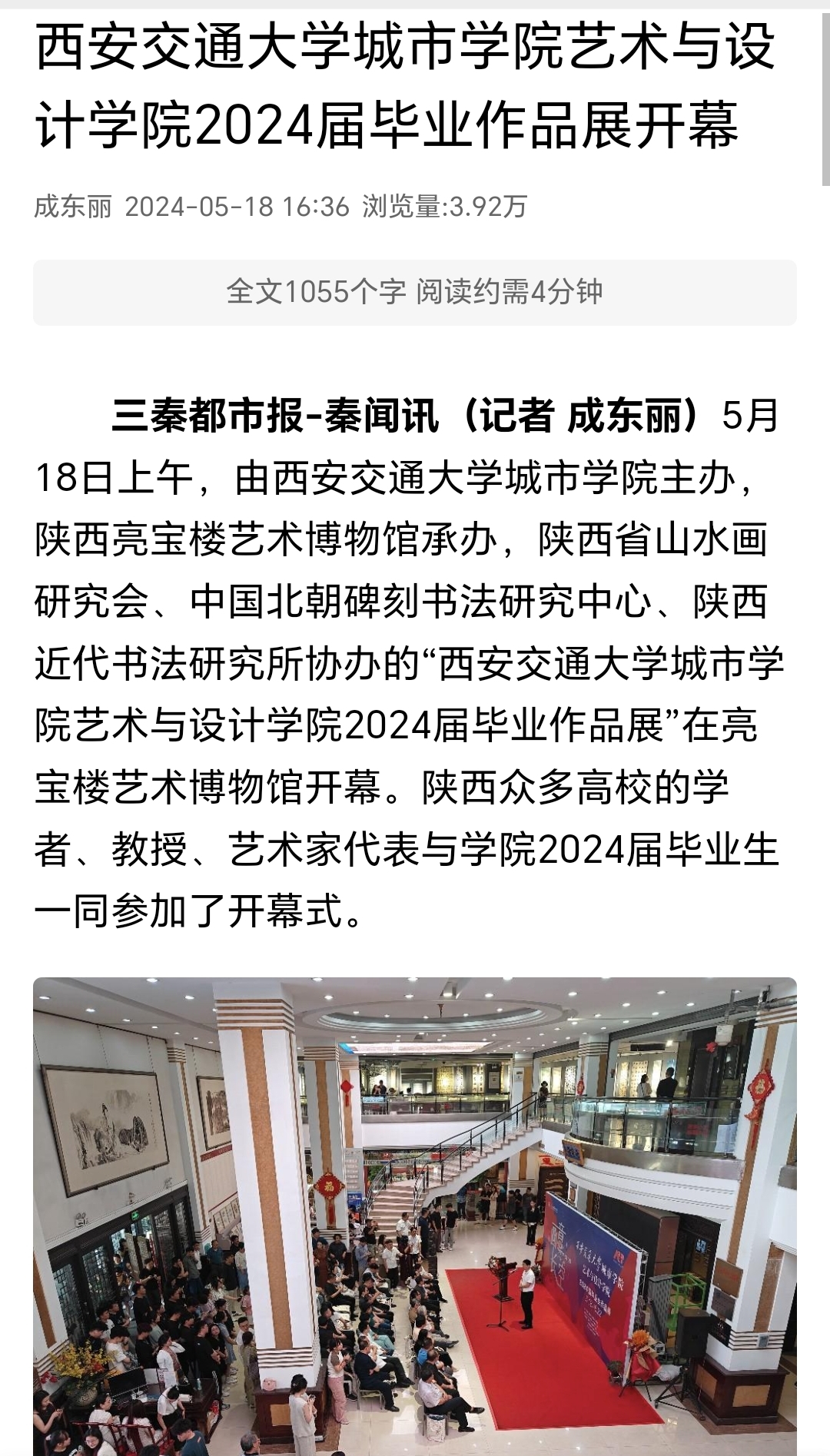 5月18日上午,由威尼斯7798cc主办,陕西亮宝楼艺术博物馆承办,陕西省山水画研究会、中国北朝碑刻书法研究中心、陕西近代书法研究所协办的“威尼斯7798cc艺术与设计学院2024届毕业作品展”在亮宝楼艺术博物馆开幕。陕西众多高校的学者、教授、艺术家代表与学院2024届毕业生一同参加了开幕式。