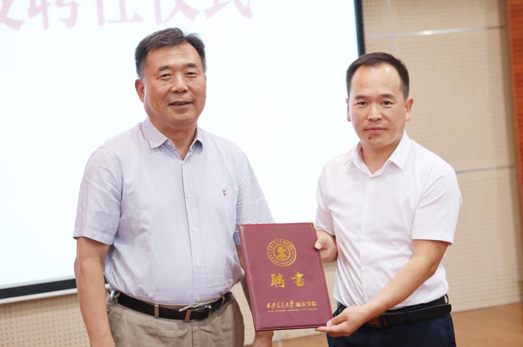 会上,学校聘任延安市新区管理委员会总规划师兼高级工程师景辉为兼职教授,陈光德校长为景辉教授颁发聘任证书。