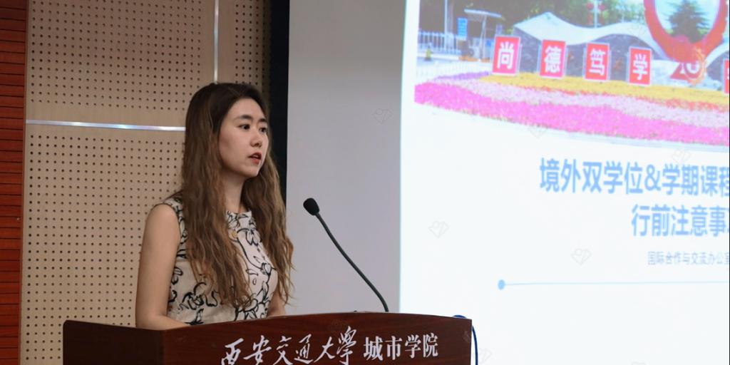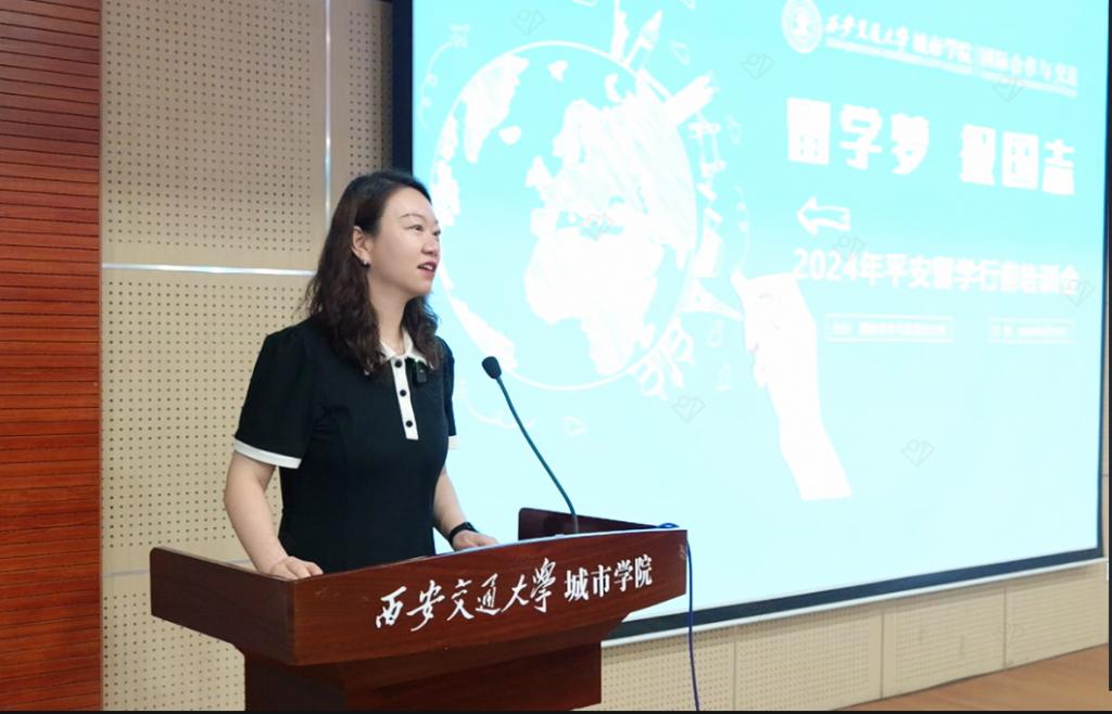 随后,组织人事处处长助理孙晓为同学们进行了境外安全教育讲座,她提醒大家注意留学过程中的安全隐患及应对方法。国际合作与交流办公室冯欣从知行礼仪、学习要求、学分置换、行前准备等方面进行了详尽的行前培训,她预祝同学们“平安留学、健康留学、文明留学、成功留学”。