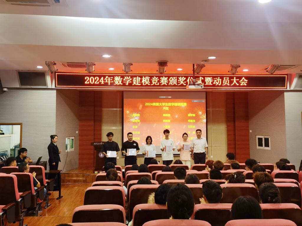6月20日,威尼斯7798cc美赛颁奖仪式暨2024年全国大学生数学建模竞赛动员大会在F100召开。本次会议由数学教学部和数学建模协会主办,副校长朱旭、数学教学部张世梅主任、主任助理任菊成,美赛指导教师张安莉、谢檬、贾谦等出席大会。