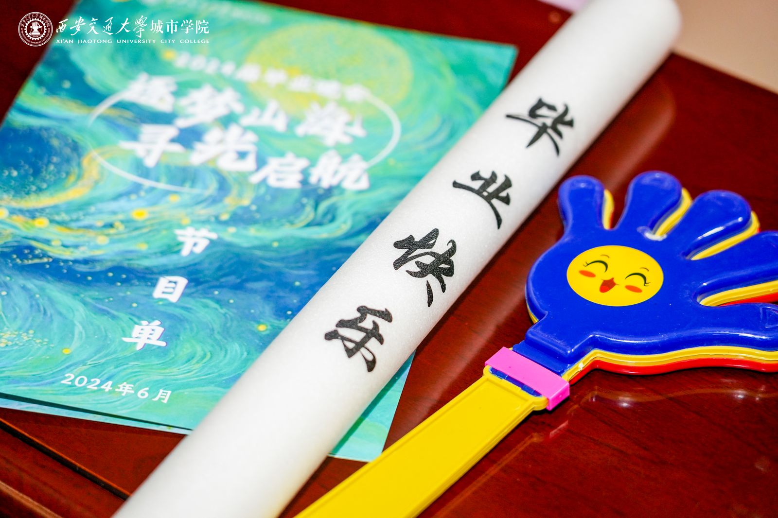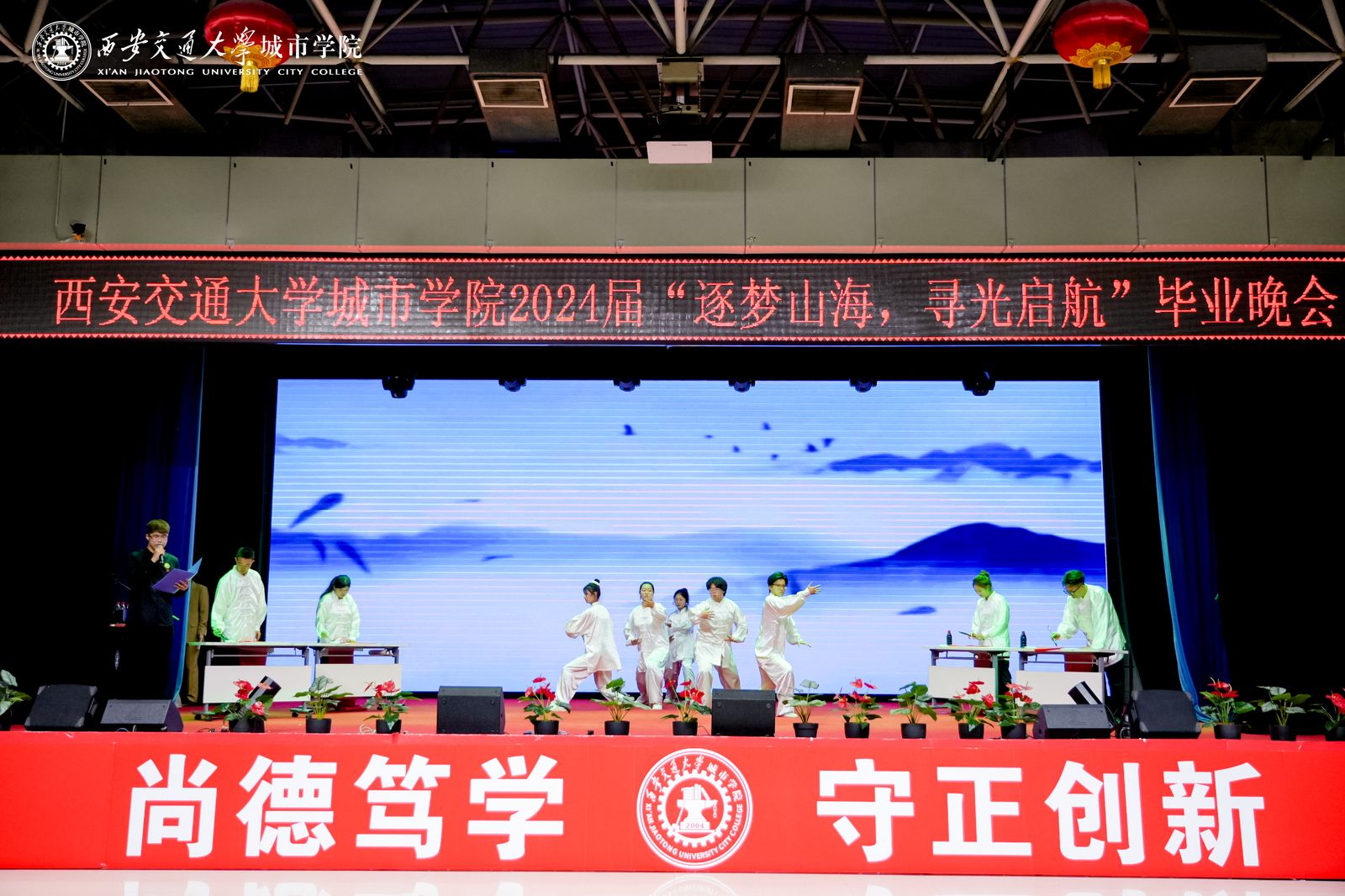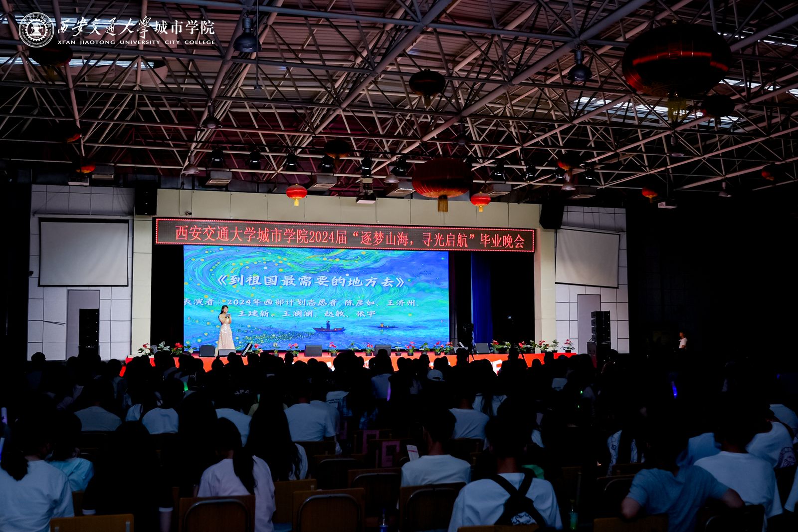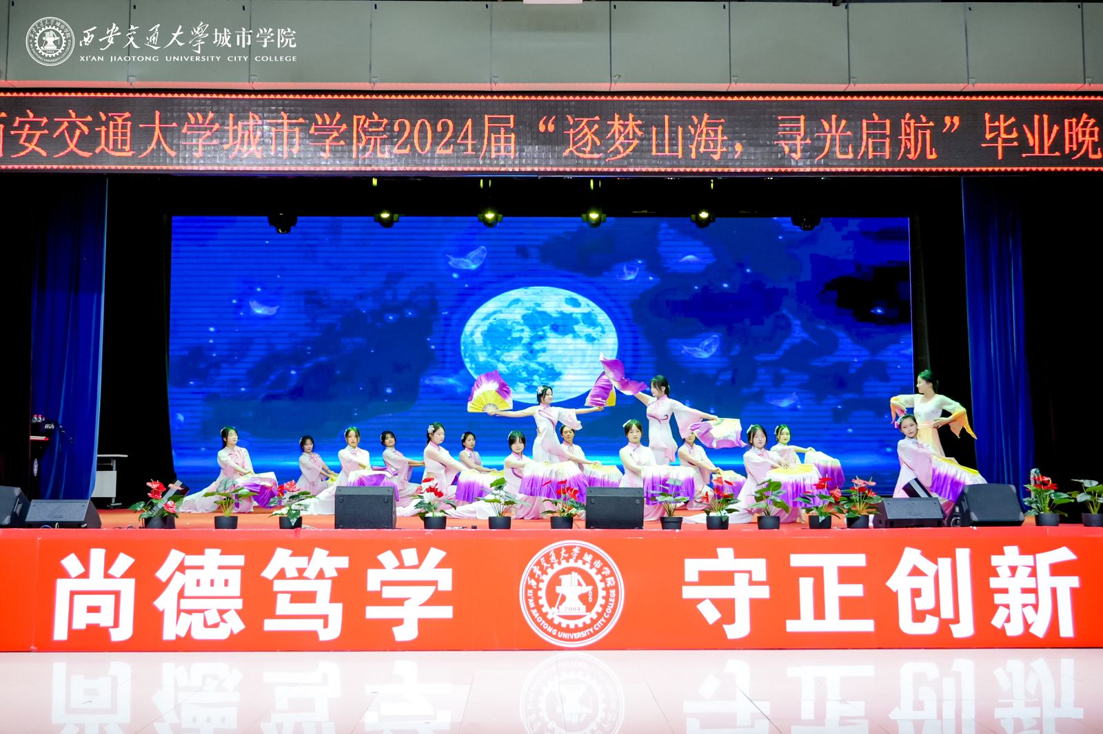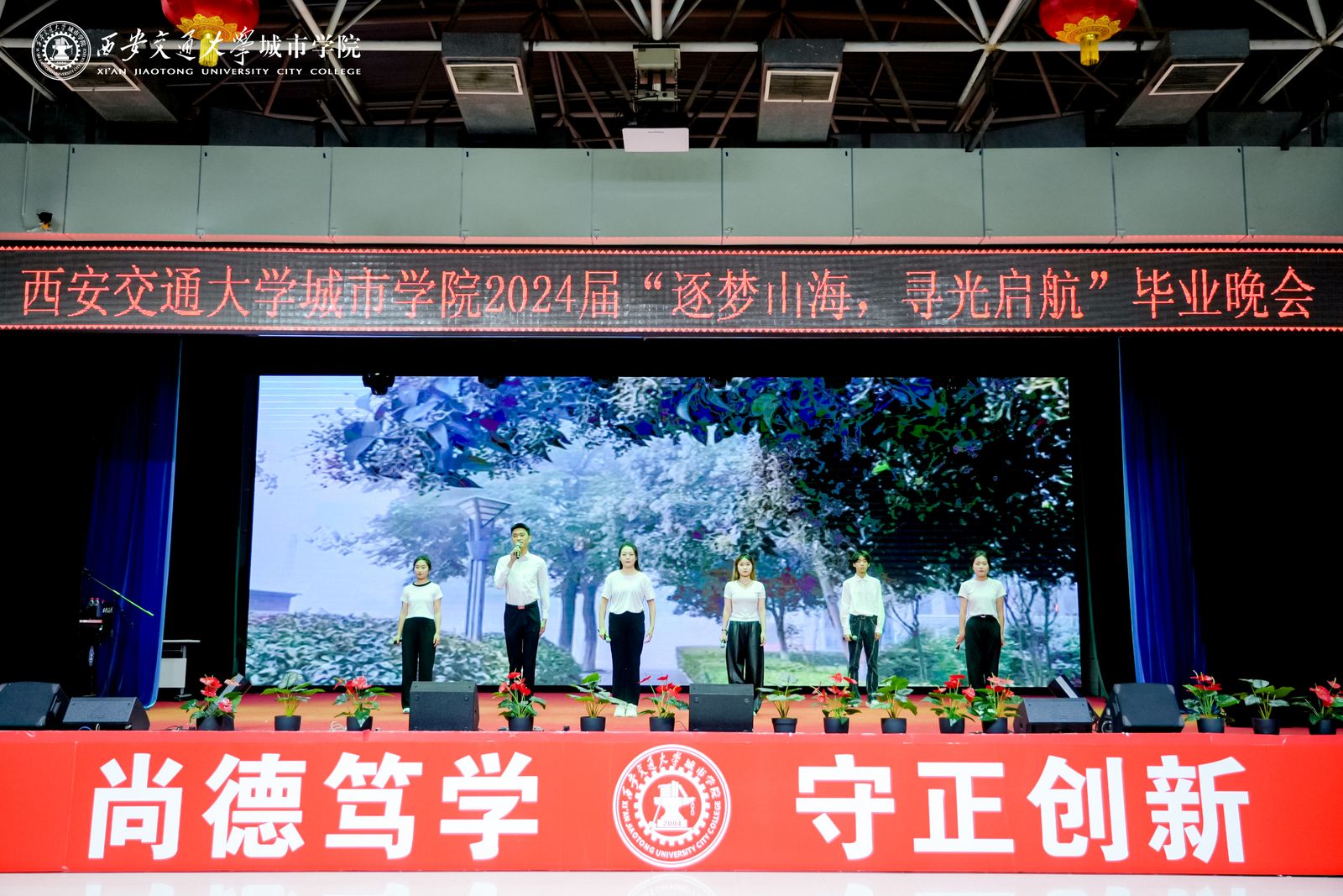 整场晚会伴随着《城院璀璨的你》青春的旋律拉开序幕。随后,舞蹈《上春山》活力开场,表达了城院学子对城院美好时光的留恋和感激。由社团毕业生们带来的《水墨丹青》表演,在每一笔墨,每一招式下都表达着对母校的情深意切和岁月留念。学弟学妹们献上歌曲《昨日青空》表达对学长学姐的美好祝福,《这世界那么多人》《我们的时光》《春风十万里》《super girl》《十六焕碟》等师生共同参与的歌曲、舞蹈,祝愿在城院相遇的毕业生在未来的路上可以成为更好的自己。配音《再见城院》用诙谐幽默的语调配合当下流行的影视片段“另辟蹊径”地表达了对母校的不舍和深厚的情感。2024年西部计划6名志愿者通过《到祖国最需要的地方去》节目表达了对母校的感激和栽培,他们表示,在接下来的服务中将牢记母校嘱托,为西部建设贡献城院青春力量。此外,还有小品《毕业清单》、脱口秀《怎么办!我们毕业了》用生动的演绎和夸张的表情以及轻快的音符复刻了在城院的青春印记和欢声笑语。由毕业班辅导员老师、班主任老师和毕业生带来的歌曲表演《这样的四年,这样的思念》将本场晚会推向高潮,漫天散落的花瓣和不舍的相拥,刻画成了这个夜晚最美的回忆。