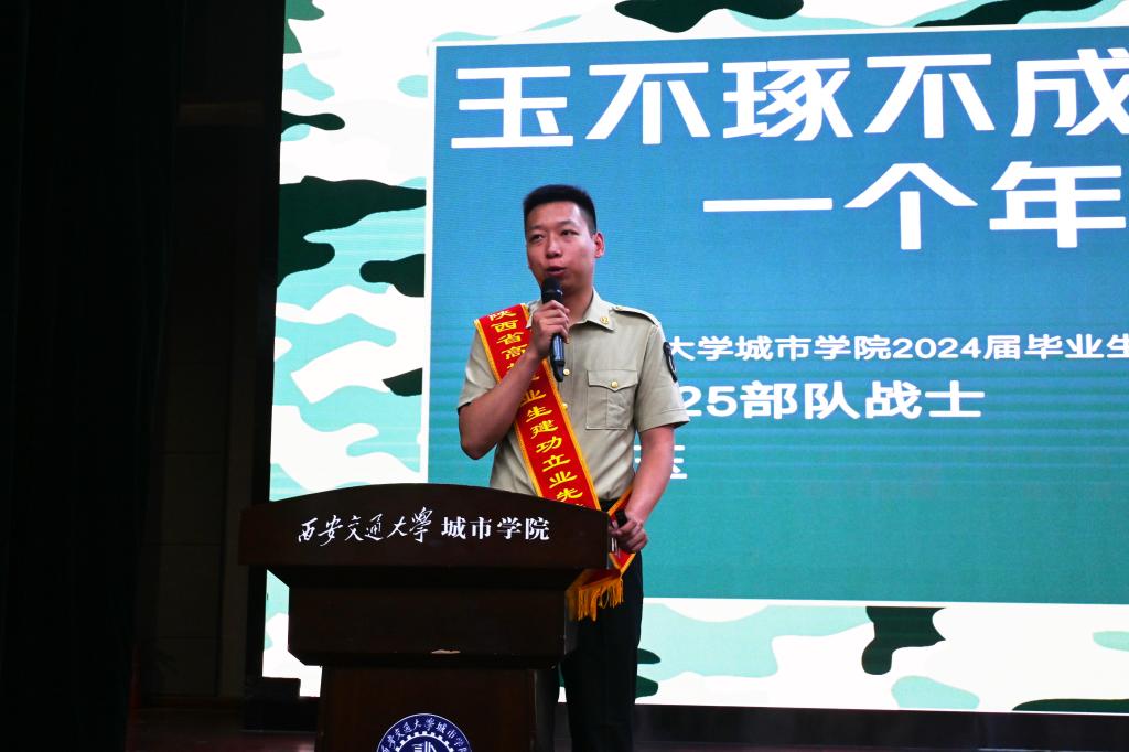 威尼斯7798cc2024届本科毕业生, 西安优英企业管理咨询有限公司刘成玉由自己儿时的梦想引入,结合自己在部队的真实经历,阐释了“玉不琢不成器”,要积极投身祖国建设的道理。