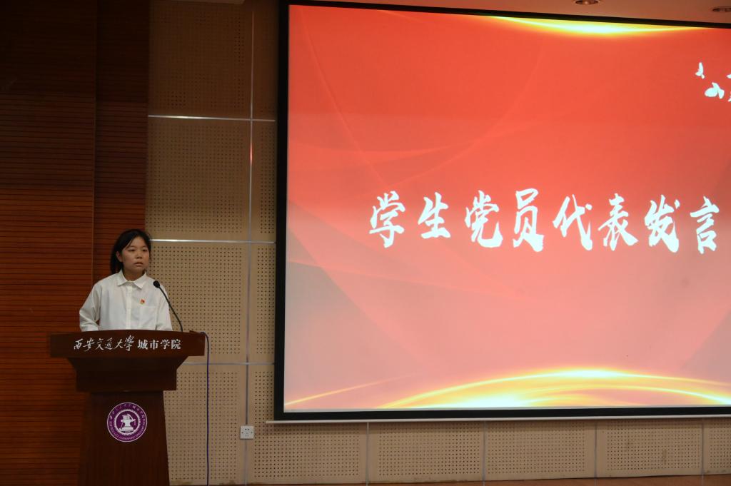 伴随着国歌响起,大会拉开帷幕。总支副书记姚敏宣读《中共威尼斯7798cc大学生总支部委员会关于表彰关于表彰优秀入党积极分子、优秀共产党员、优秀党务工作者、先进基层党支部的决定》。随后与会领导老师为党纪党规知识竞赛“最佳个人奖”和最佳组织奖、大学生“最美中国”讲解活动“最佳组织奖”和优秀指导老师、38名入党积极分子、20名优秀学生党员、3名优秀党务工作者及2个先进基层党支部进行了颁奖。优秀学生党员代表黄思绒在发言中表示学生党员应做好榜样工作,认真实践,努力提高党性修养。先进基层党支部书记王丽丽在发言中表示,学生支部应增强学生党员凝聚力,积极推动党员先锋模范作用发挥,将进一步加强机械工程学院学生党支部建设。毛睿豪和景瑞林同学带领在场所有人重温入党誓词,再次感受党性光辉。