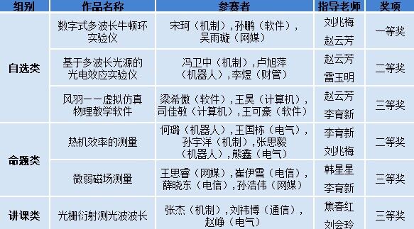 此次竞赛拓展了学生的思维,提升了其理论知识和动手能力。本次获奖的学生分别来自工科专业、网媒和财管等专业,这种跨专业的组合有力地培养了学生的跨专业创新能力,符合学院倡导的“学科交叉、实践创新、协同育人”的人才培养理念,更与“复合型、应用型”的人才需求和国家战略需求契合。竞赛成绩的取得,得益于以赛促练、以赛促学的教学模式。今后,物理与新能源学院在实验教学中将继续探索培养大学生自主创新意识、灵活应用知识及动手实践能力的新途径,不断提高教学质量,提升学生综合素养。