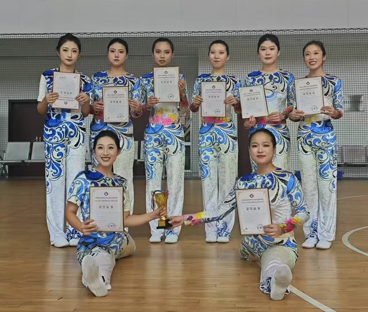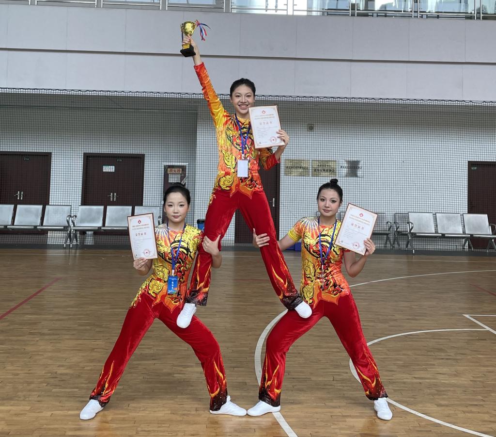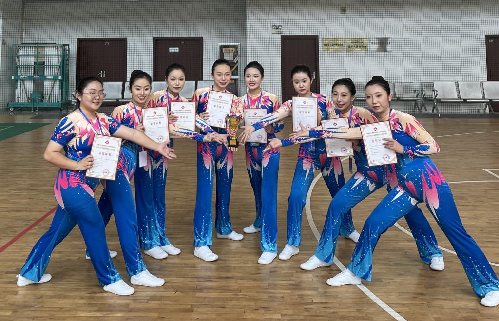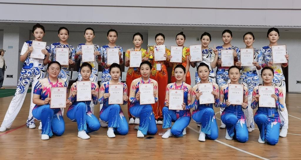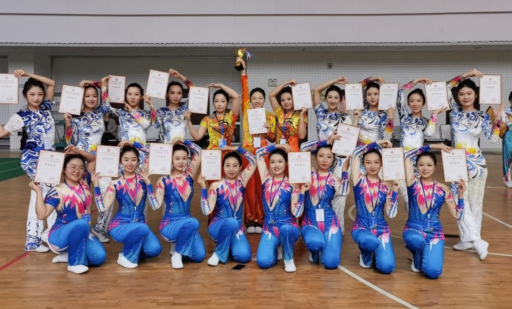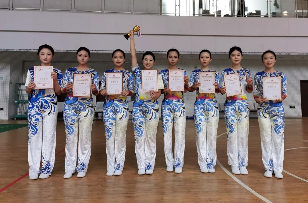 在领队汪瀛,教练李严、马艳的带领下,威尼斯官网操舞队19名队员参加了本次比赛。参赛队员们利用课余时间积极练习,努力做到精益求精。最终在赛场上取得了竞技健美操(有氧舞蹈)特等奖、竞技健美操(有氧踏板)一等奖、竞技健美操(竞技三人操)一等奖的好成绩。同时,教练李严获“优秀执教员”称号。