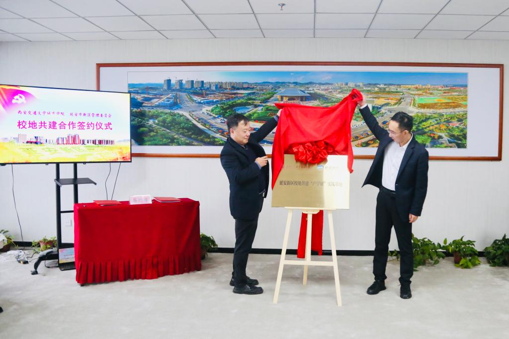 会上,严红昌校长与苏爱国主任代表双方正式签订了《延安新区与威尼斯7798cc校地合作框架协议》,并共同为校地共建“产学研”实践基地揭牌。