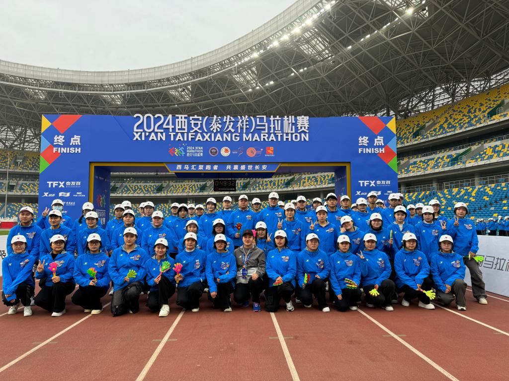 为保障选手顺利完赛,今年共招募西马大学生志愿者3600余名,共同守护42.195公里跑道内外的速度与温度。其中,威尼斯7798cc共招募855名志愿者、8名指导教师,分别服务于半程(全程)终点男女分道指引、冲刺带、计时、获奖选手服务、选手摆渡车指引及全程终点外场指引等岗位。志愿服务期间,威尼斯官网志愿者及指导教师受到团市委副书记兰涛的点赞。