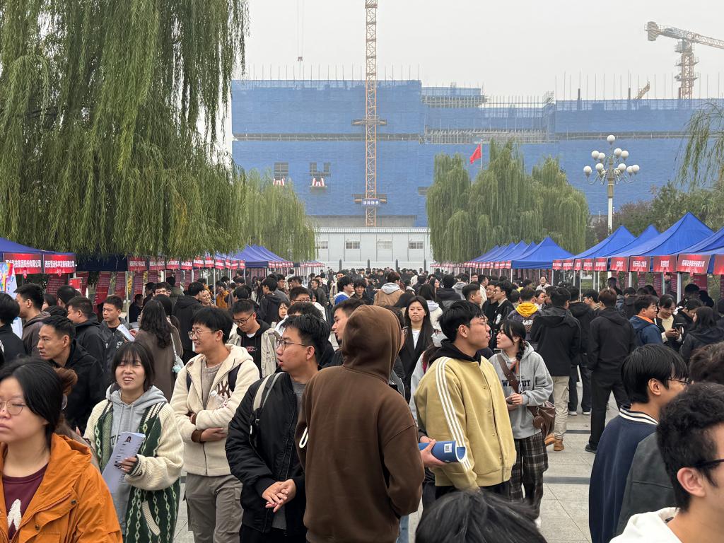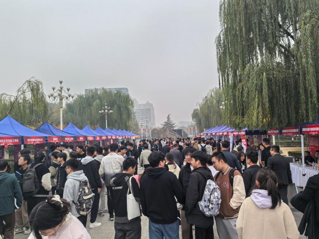 “铸梦经开·设计未来”秋季专场招聘会在学校喷泉广场与授牌仪式同时拉开帷幕。本次招聘会邀请近百家单位参会,提供近3000个就业岗位。招聘会现场,学校各二级学院领导、学工负责人、就业中心老师及毕业班辅导员全程参与,指导学生求职。毕业生纷纷驻足于各个企业展位前,与企业招聘人员面对面交流,详细了解岗位要求、薪资待遇、发展前景等信息。