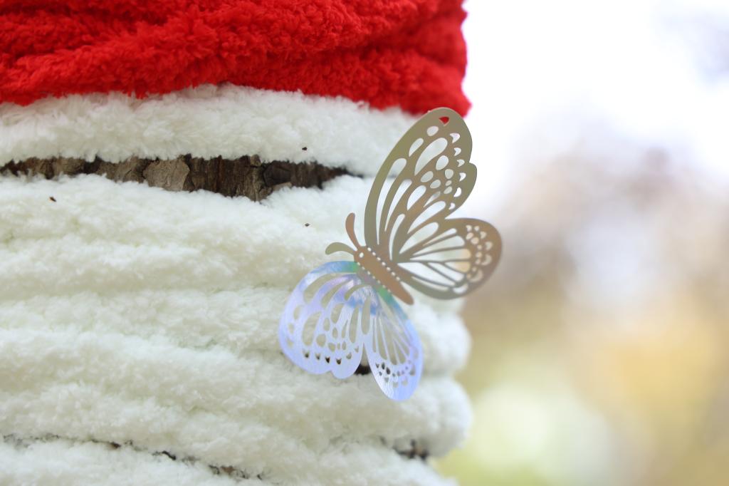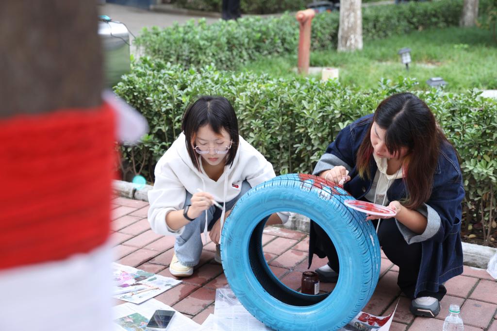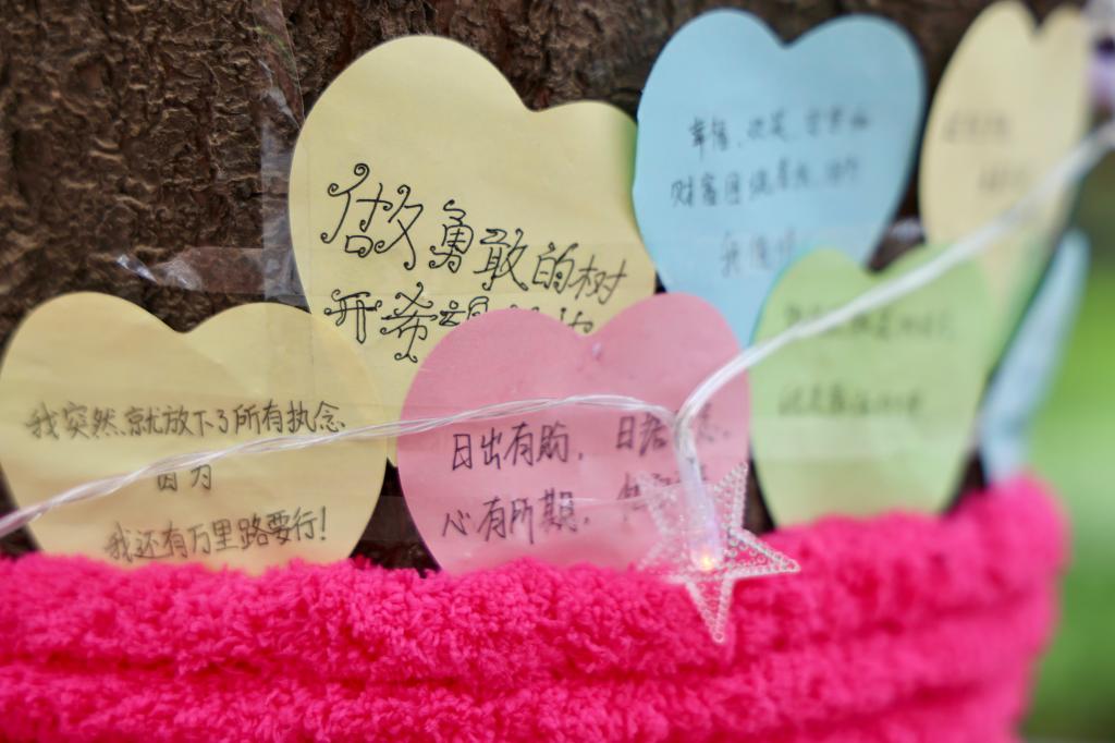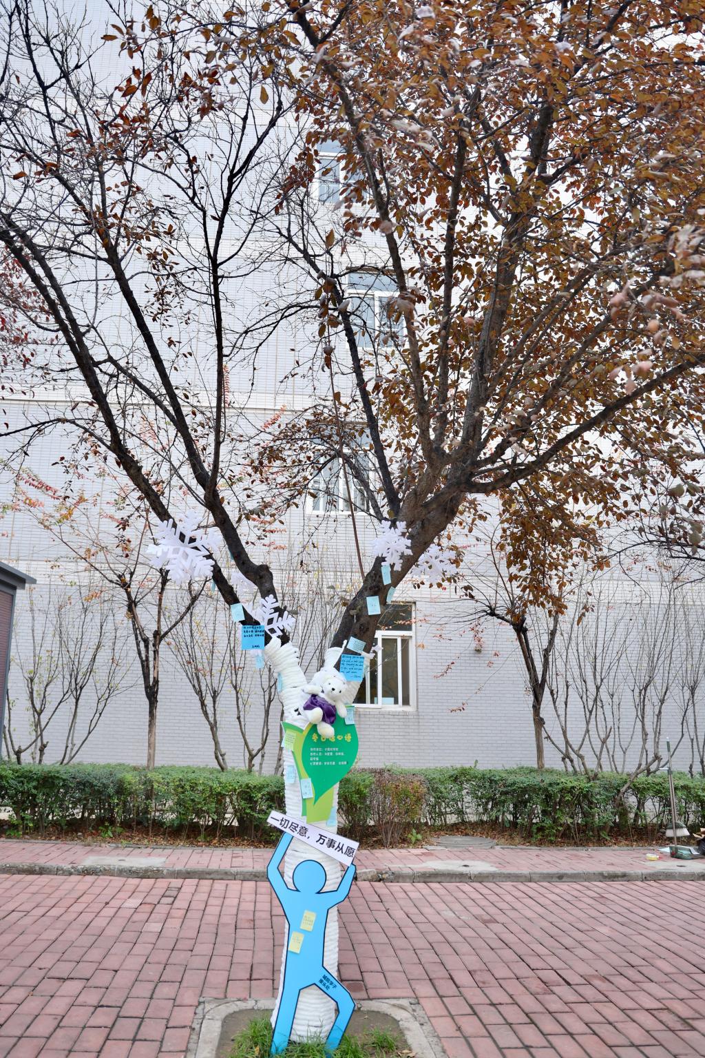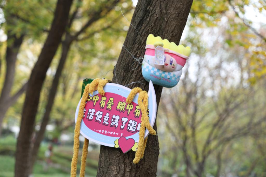 活动过程中,同学们用心去观察树木的特点,用五彩斑斓的毛线、毛绒玩具、手工作品和绘画书法等材料,为树木做出了一个个既有美感又有心理温度的装扮,传达着积极向上、阳光乐观的思想情感,丰富多彩的创作不仅美化了校园环境,还为同学们提供了一个情感宣泄和心灵慰藉的空间。通过与自然互动,同学们在轻松愉快的环境中释放压力,表达内心感受,达到了情绪调节的目的。