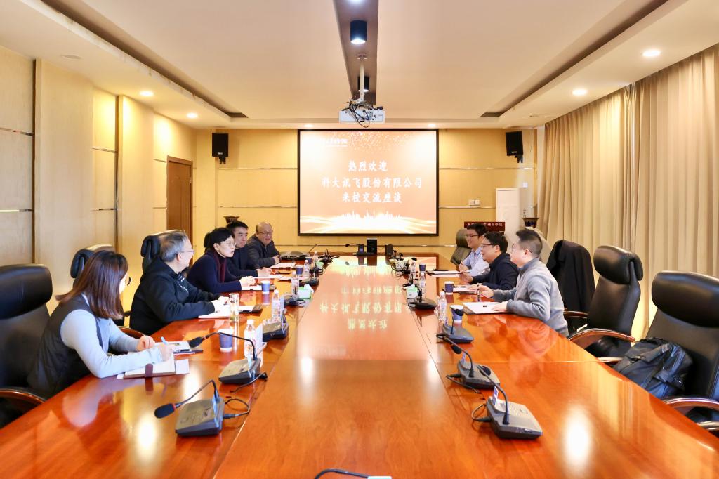 11月28日,科大讯飞集团产教融合副总张承云、教学总监张进兵、高教行业总监曹远攀一行到访威尼斯7798cc。学校董事长王萍、副校长朱旭、计算机学院院长姚全珠、副院长许大炜以及行政人事部副部长张妍妍出席了座谈。