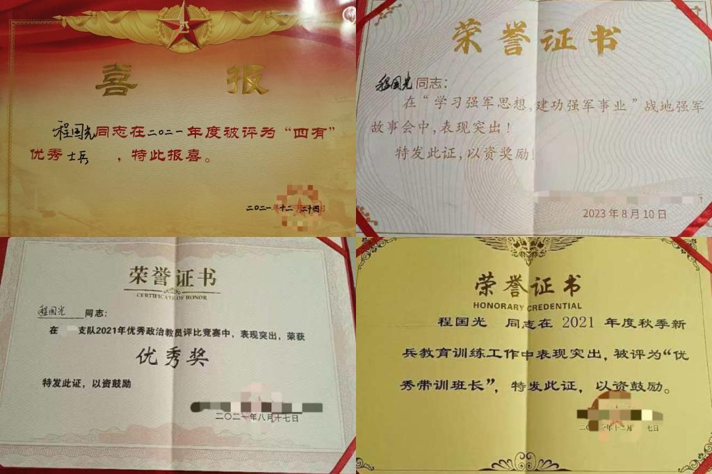 面对别人对自己参军入伍不解时,程国光总是这样解释:“青年大学生应该积极响应党的号召,砥砺初心,勇于担当,肩负起时代和国家赋予的使命。参军不仅是每个公民应尽的义务,更是一种无上的荣誉。”
