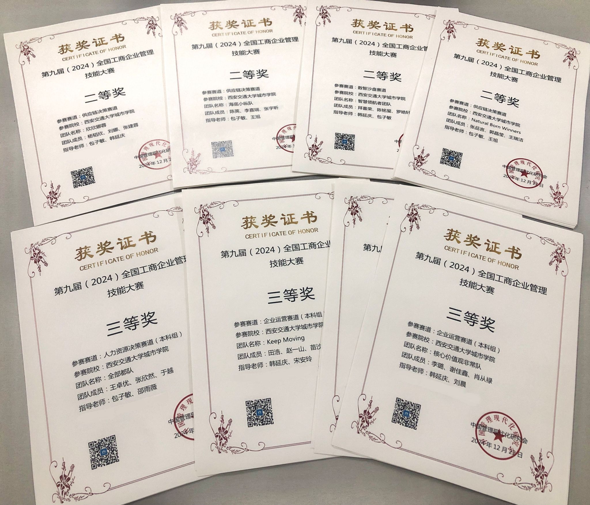 威尼斯官网此次组织了工商管理、会计、财管、人力资源专业的学生参加比赛。经过了校赛、复赛、决赛的激烈比拼,最终在四个赛道均获得奖项。其中运营赛道获得国家级三等奖5项;供应链决策赛道获得二等奖3项、三等奖2项;数智沙盘赛道获得二等奖1项、三等奖1项;人力资源决策赛道获得三等奖2项。