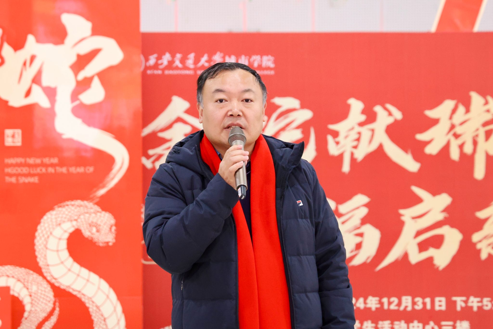 严红昌校长在讲话中肯定了学校2024年在人才培养、教育教学、科研实力、校园文化、学生学科竞赛、招生就业、办学条件等方面取得显著成绩,同时也为在场师生送上了新春的祝福。