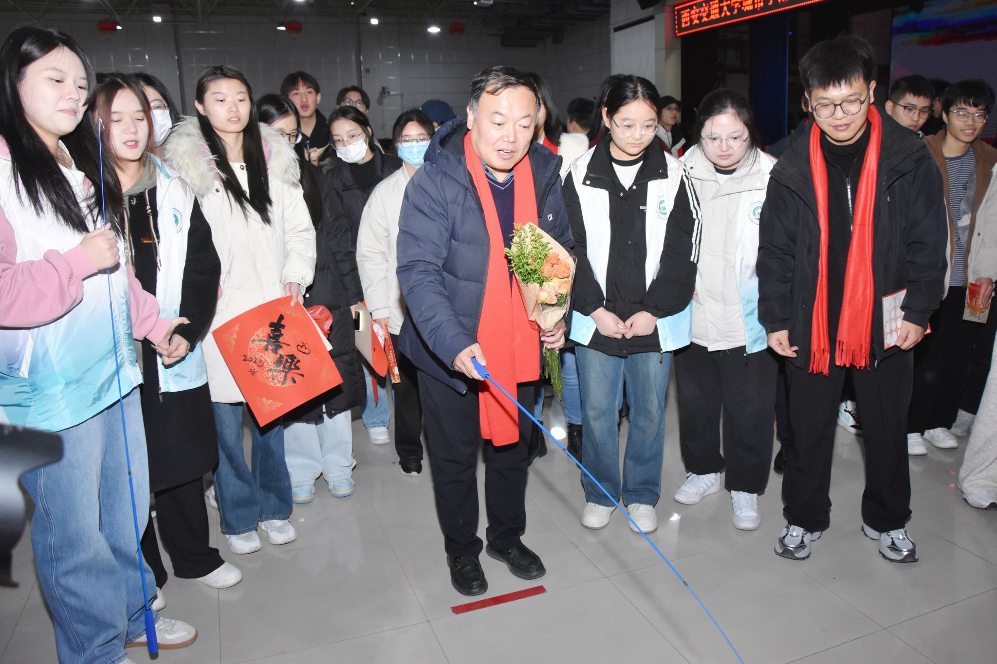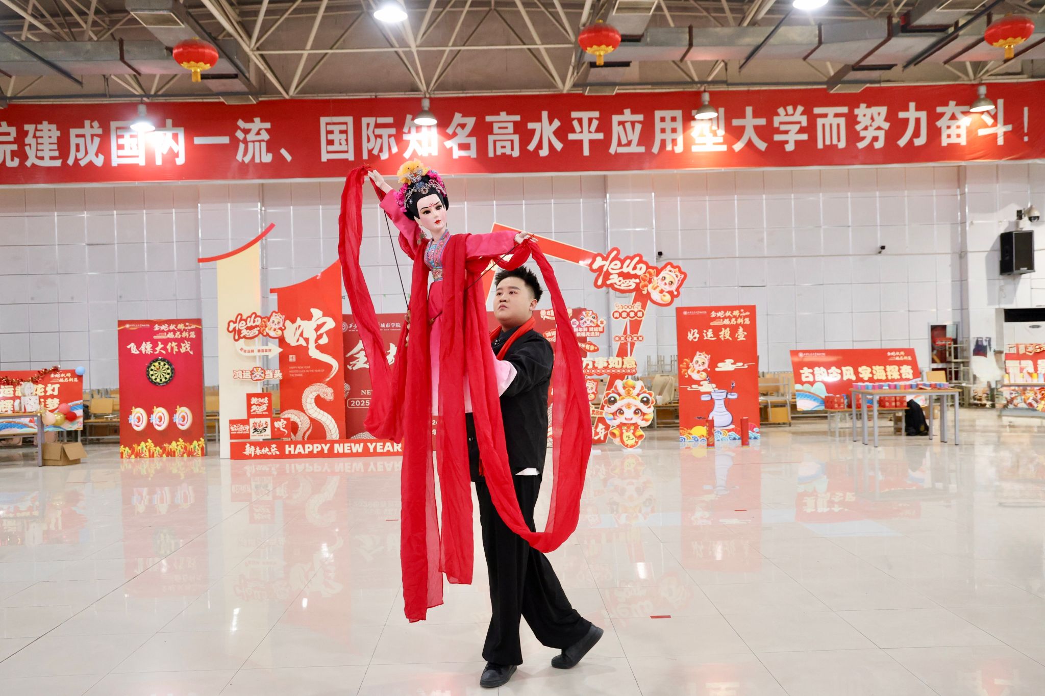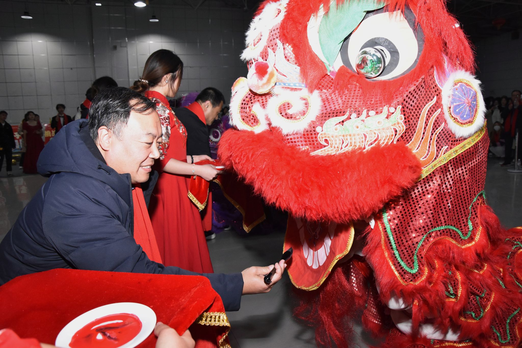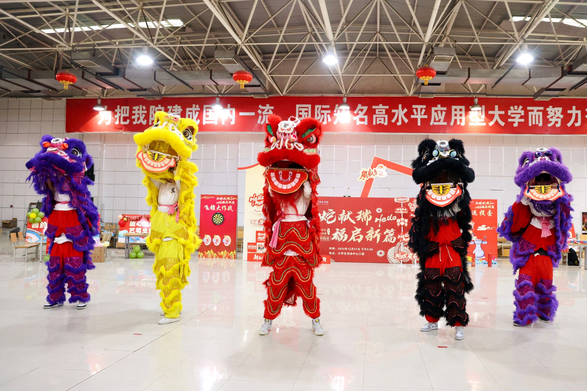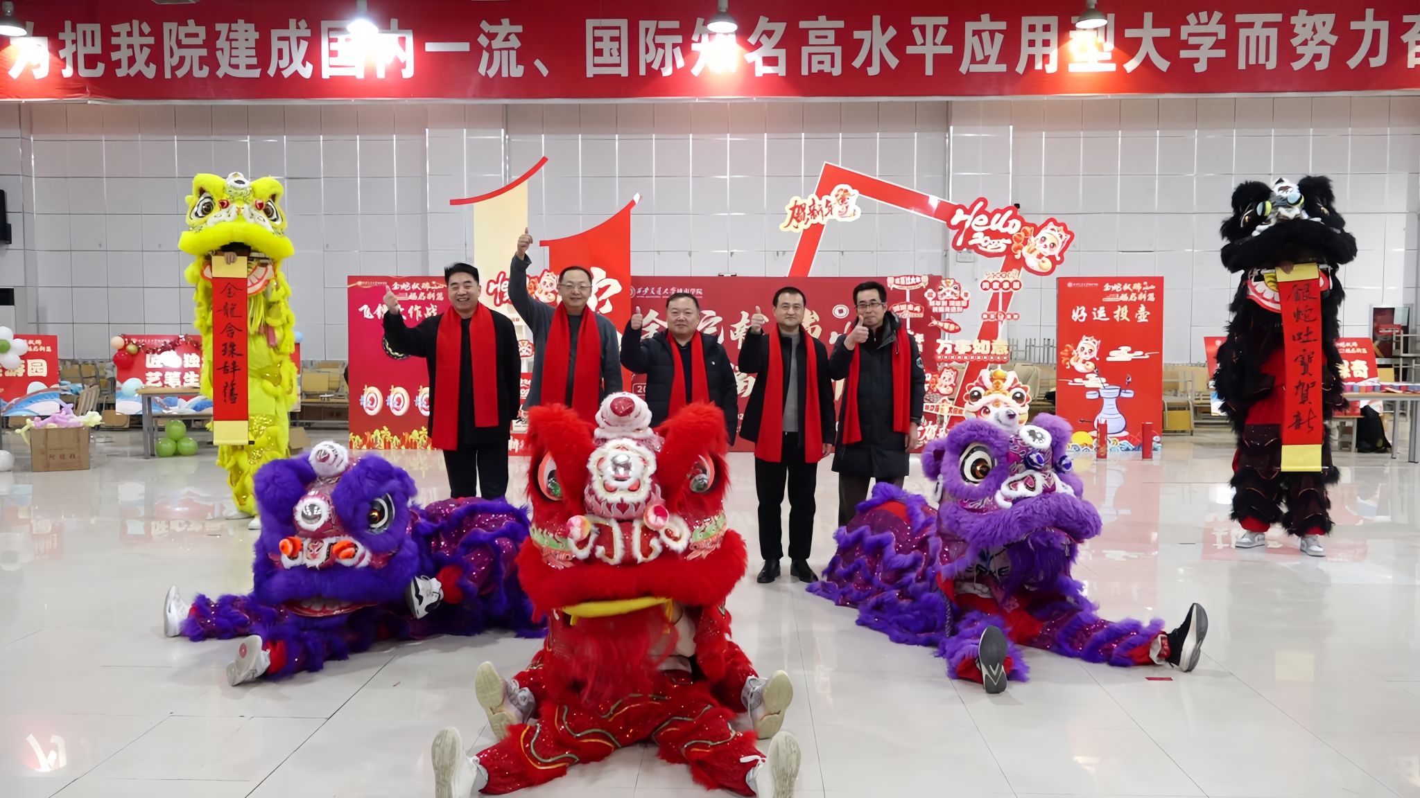活动现场热闹非凡,充满了欢声笑语。文艺表演中,校团委徐兰君演唱了一首《阳光路上》,激昂的歌声点燃了现场的氛围。陕西杖头木偶戏非遗传承人张康瑞为大家展示了木偶戏长绸舞《梁祝》和《木偶变脸》等节目,校舞狮队在欢快的锣鼓声中舞动起来,灵动的身姿和栩栩如生的表情赢得了在场师生的阵阵掌声,校领导们共同为祥瑞之狮“点睛”,象征着吉祥和如意,为新春游园会增添了一抹喜庆的色彩。