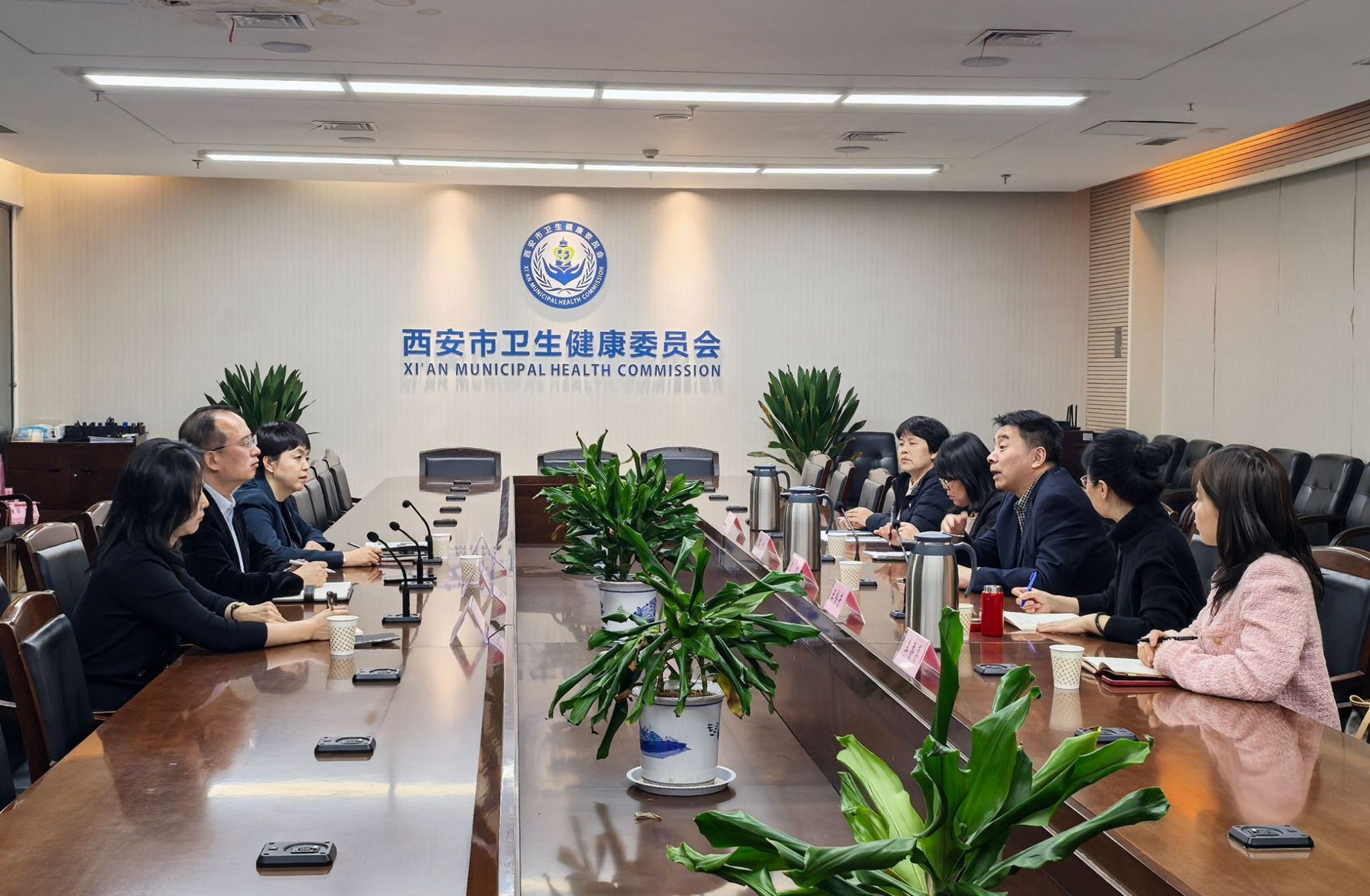 3月19日下午,威尼斯7798cc副校长朱旭带队,未央区人大代表、通识教育学院数学教学部主任张世梅、护理与康复学院常务副院长王梅芳、护理与康复学院院长助理李楠、护理与康复学院实验室主任李香香一行前往西安市卫健委进行交流座谈。