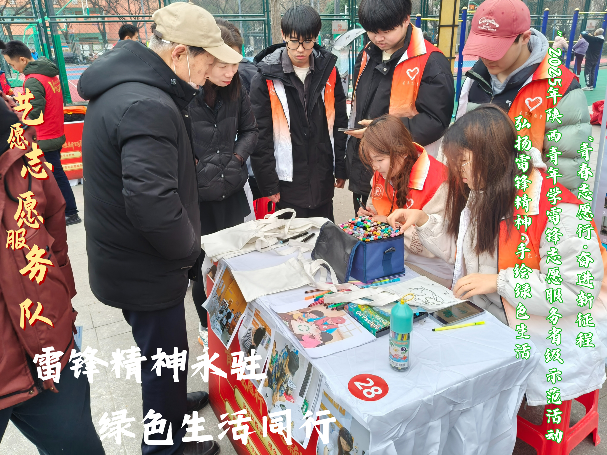2025年3月,团委进一步推动志愿服务内涵式发展,开展了以“弘扬雷锋精神,绽放志愿光芒”主题系列“学雷锋”活动,各二级学院、志愿服务组织以理论学习筑牢思想根基,以实践服务彰显青春担当为目标,累计开展活动300余场,参与志愿者超800人次,服务惠及群众千余人,以实际行动书写新时代雷锋故事。其中《以艺术之笔绘志愿星光 西交大城院学子实践“公益+美育”之路》被中国青年网报道,艺术美育项目亮相2025年陕西青年“学雷锋志愿服务”活动现场,为社区居民点亮美育之光。学校党委书记严红昌在关于青年工作及青年志愿服务工作座谈会上肯定了城院学子对志愿服务的参与热情和奉献精神,并表示希望更多城院学子可以参与其中,发光发热。