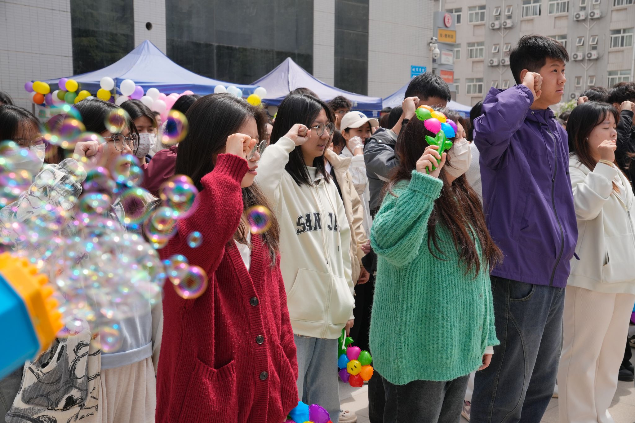 启动仪式结束之后,心理游园会在欢声笑语中拉开帷幕,与会领导、老师们与全校学生共同参与了心理游园会活动。活动现场气氛热烈,各二级学院将心理教育与“五育润心,赋能青春”主题巧妙结合,精心设计了形式多样的活动,既可以通过趣味游戏感知情绪,也可以通过艺术表达疗愈心灵,更能在互动中感受同辈支持的温暖力量。