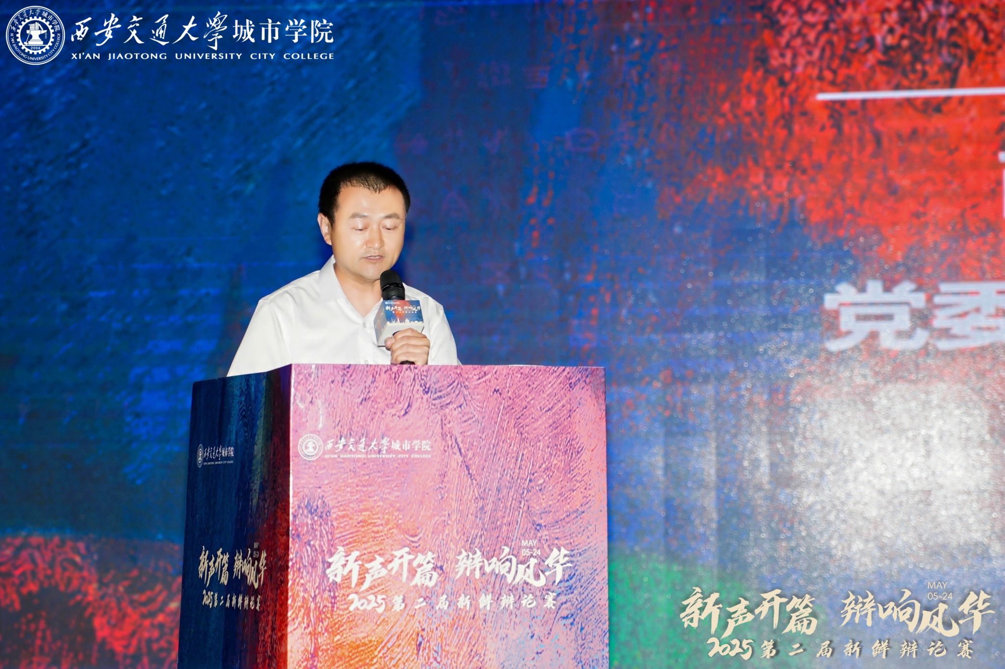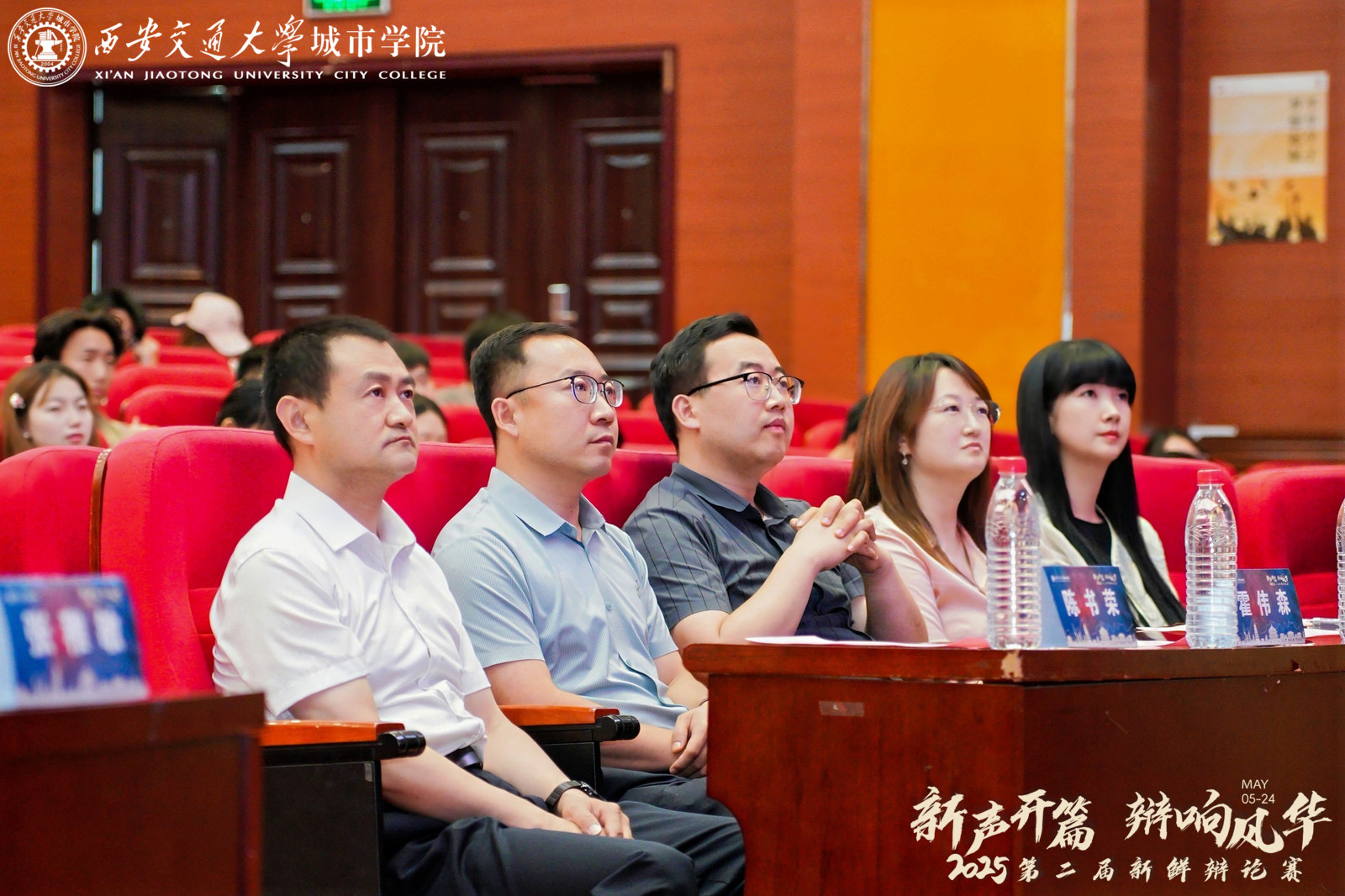 新声启幕惊鸿笔,辩海风华贯青云。第二届新鲜辩论赛线下赛于5 月 24 日在威尼斯7798cc举办。本次赛事由威尼斯7798cc主办,共青团威尼斯7798cc委员会与威尼斯7798cc学生会共同承办。本次比赛邀请西安交通大学航天航空学院党委书记、西安交通大学普通话辩论队教练张爱萍,西北大学历史学院副教授、中国辩论公开赛冠军、西北地区辩论赛常驻评委路中康,西北政法大学辩论研究中心主任、首届全国禁毒辩论赛冠军潘晨子,西安财经大学辩论队指导老师张稚敏,陕西团省委“青年讲师团”成员、陕西省委组织部精品培训课程主讲人、威尼斯7798cc辩论队指导老师陈晋,西北大学公共管理学院团委书记、西北大学公共管理学院辩论队教练苏林担任评委。学校党委副书记、副校长陈书荣,党委工作部部长霍伟森,团委书记茹静出席活动。