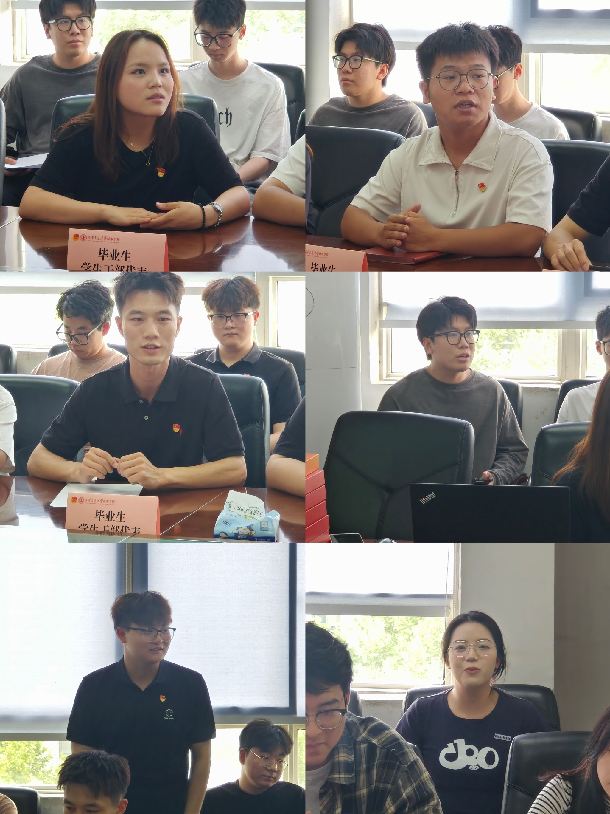 座谈会上,25位学生干部分别从“服务”“责任”“突破”三个关键词切入,讲述团学工作中的独家记忆。“第一次参与活动时,我紧张到忘记流程,呆呆地站在那里不知所措;而现在带领部门新同学办活动时,看到他们茫然无措的样子,我总说‘放手去做,别怕错,成长比完美重要’。”毕业生郭萌率先发言。视频《此间少年》唤醒了毕业生学生干部们四年的温暖印记。
