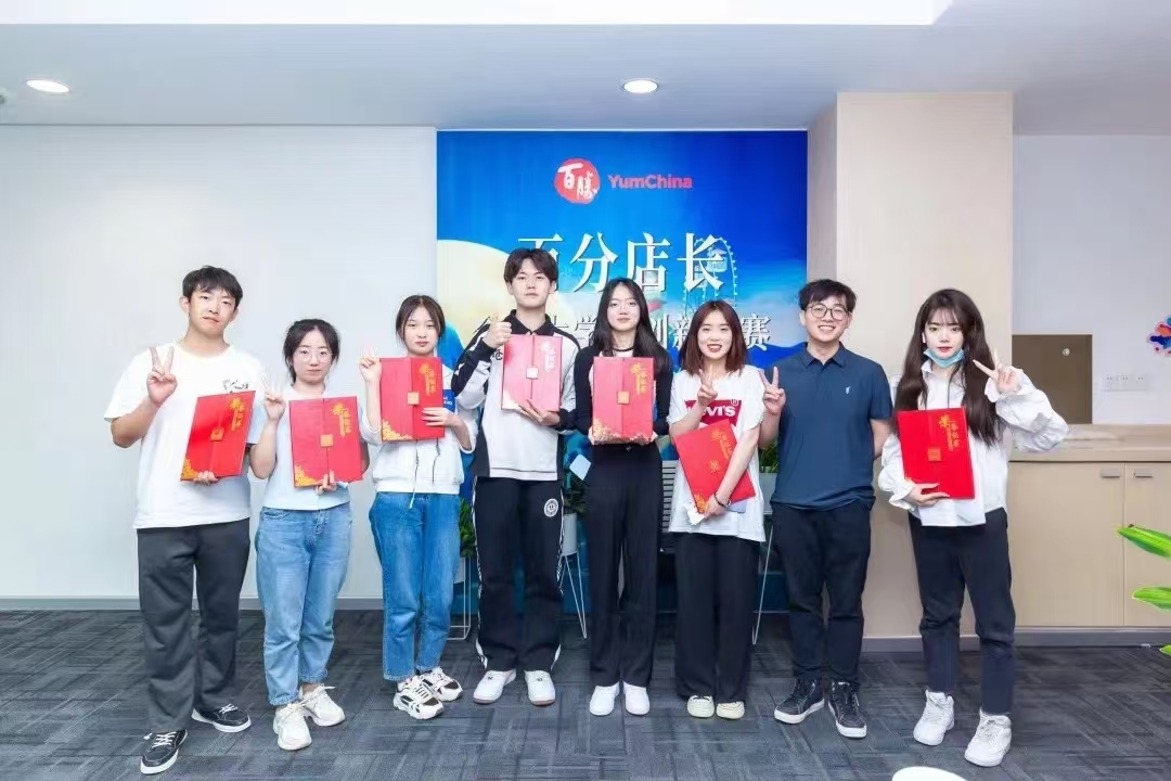 孙潇萌参加百分店长大学生创新创业大赛,右一为孙潇萌
