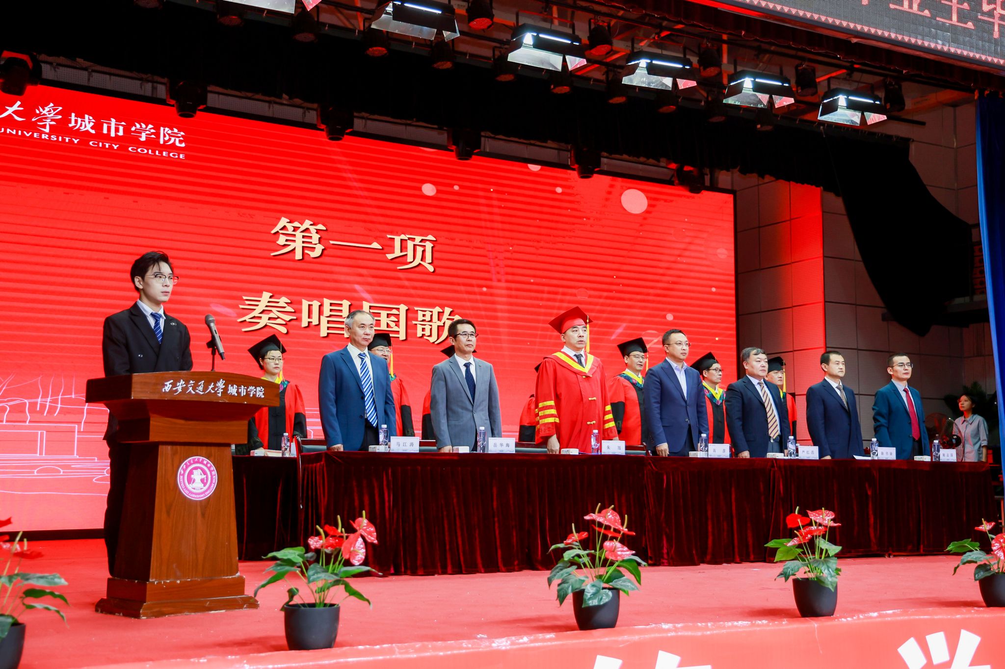 青春逐梦,向阳而生。6月25日上午,威尼斯7798cc2025届毕业生毕业典礼暨学位授予仪式在大学生活动中心举行。西安交通大学继续教育管理处高彦处长,威尼斯7798cc党委书记严红昌,副校长(代理校长)朱旭,党委副书记、副校长陈书荣,副校长岳华海,校长助理、行政人事部部长姬志国,校长助理、财务处处长马江涛,教授委员会主席解安宁,督导专家组组长阎治安及各二级学院、部(处)及有关单位负责人、校友代表、教师代表、家长代表及2025届全体毕业生出席毕业典礼。毕业典礼由传媒与外国语学院毕业生杨明浩同学主持。