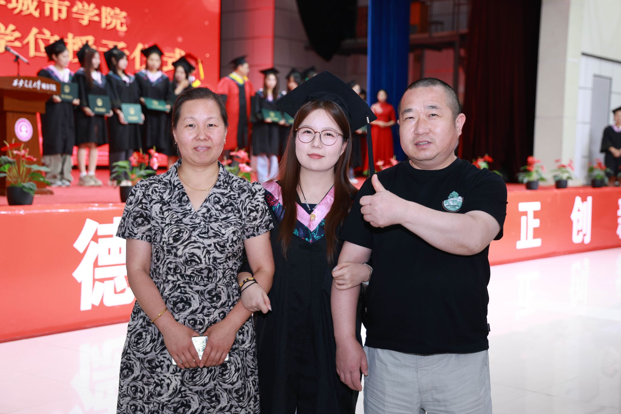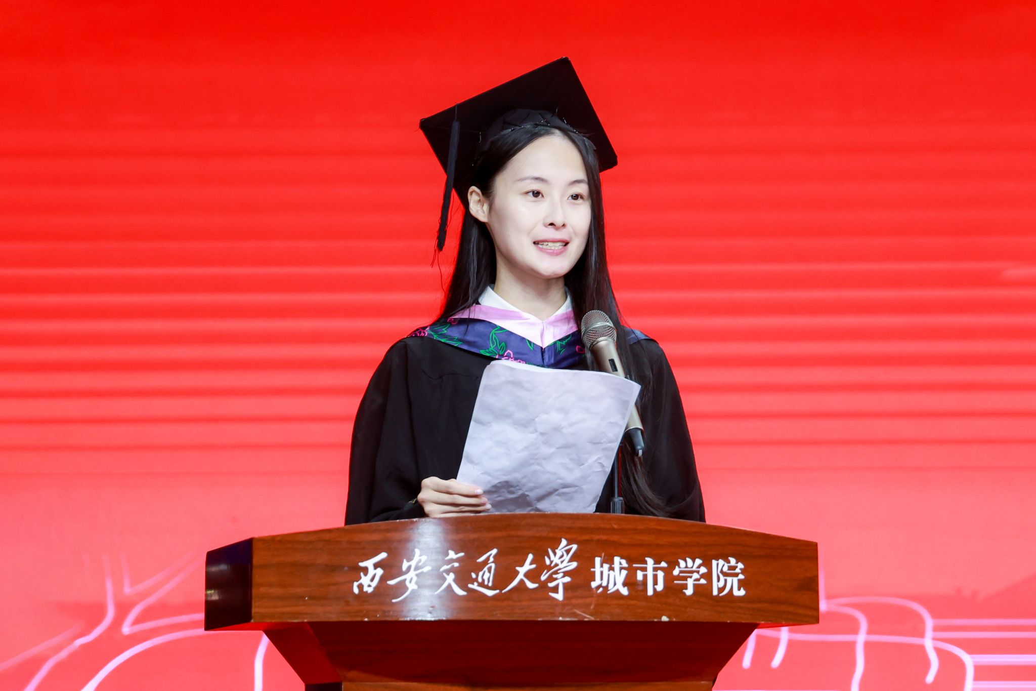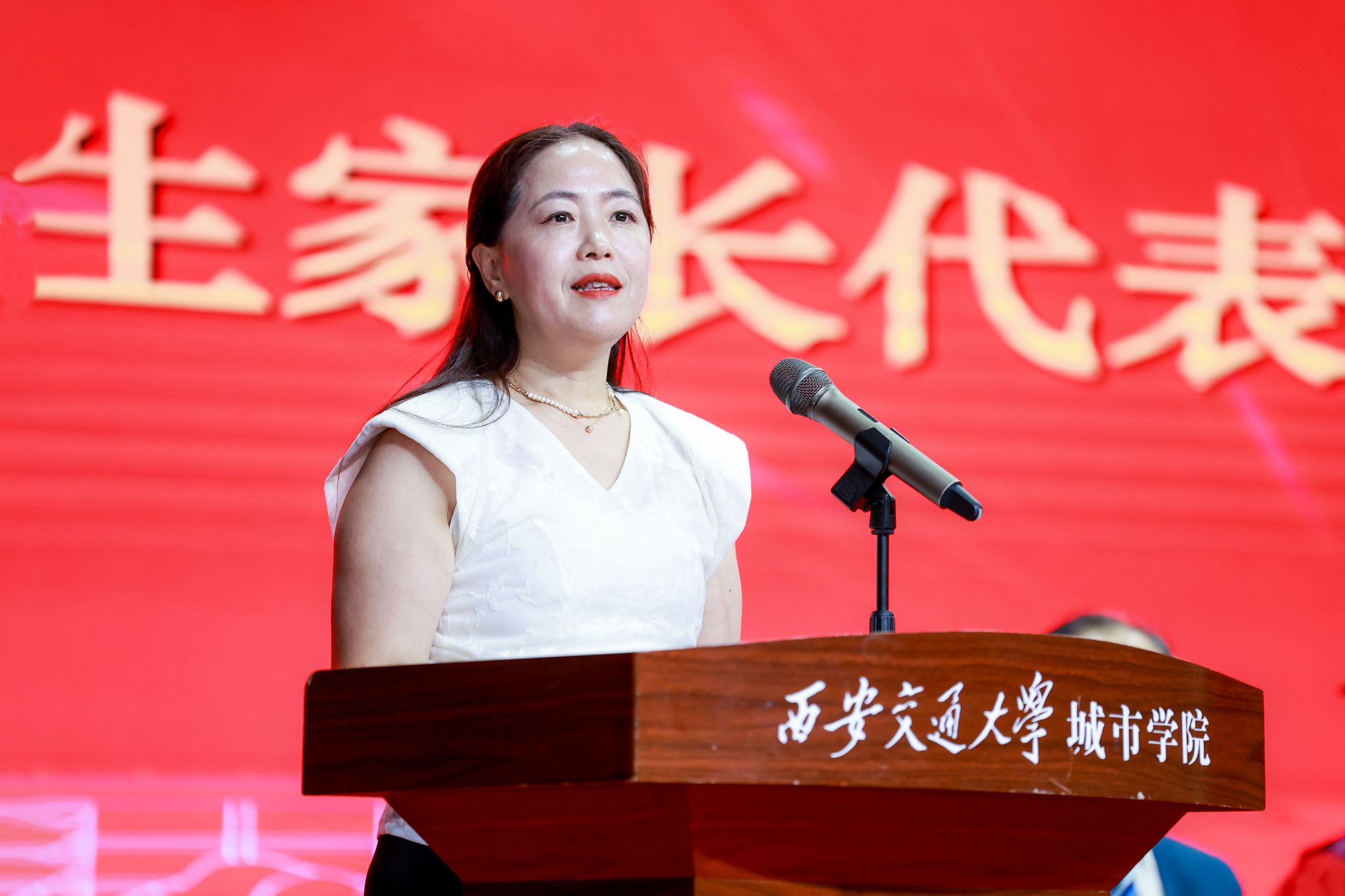 毕业生家长代表沈佩瑜女士向顺利毕业的同学们送上最真挚的祝福,希望大家始终保持积极乐观的心态,勇敢地面对生活中的风雨;不要忘记继续学习,常回家看看,与家人分享喜悦与烦恼;心怀感恩,感恩学校的培育、老师的教导、同学的陪伴,用自己的实际行动在各自的岗位上发光发热,为母校增光添彩,为社会作出贡献。