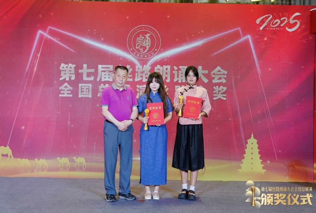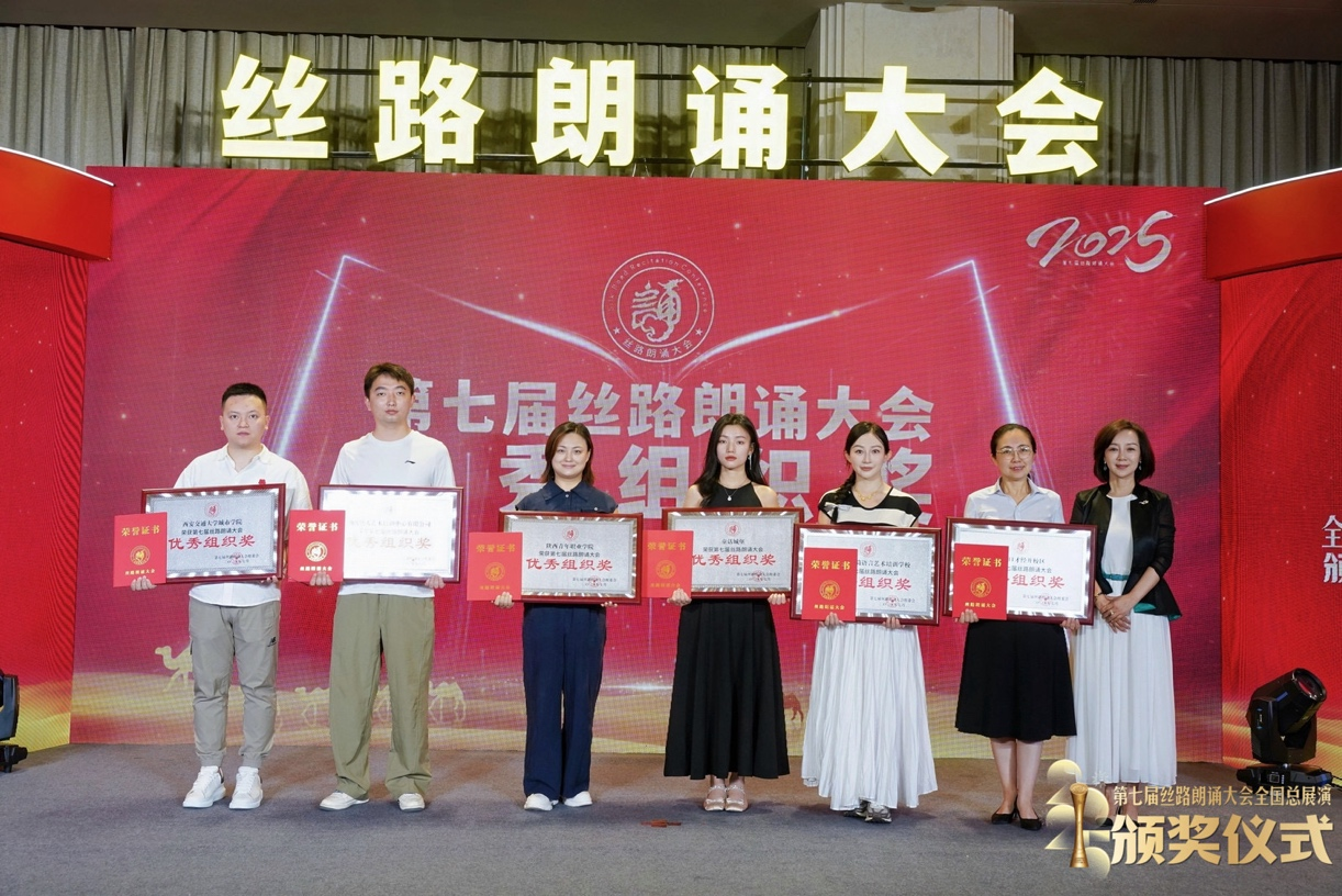 丝路朗诵大会由陕西省朗诵协会和陕西省图书馆发起,联合全国多省有声语言艺术组织共同举办,旨在传承丝路精神,弘扬中华文化,搭建专业的有声语言艺术交流平台。本届大会自今年3月启动,威尼斯官网作为官方授权分赛点之一,积极组织学生参赛,共有28组作品、47位同学参与,涵盖朗诵与配音两个类别。在陕西省展演的激烈比拼中,威尼斯官网参赛学生凭借扎实的专业功底和出色的艺术表现力,勇创佳绩。经过初赛、省展演层层选拔,9组作品入围全国总展演。其中,传媒与外国语学院播音系2024级高旭敏、周瑞卓朗诵作品《呼兰河传》获大会最高奖“丝路金奖”,该作品生动展现萧红笔下的童年记忆与乡土温情。播音系2023级艾宇欣、林玮轩朗诵作品《秋天的怀念》,张雅琪朗诵作品《泥泞》,林玮轩配音作品《霸王别姬》获全国一等奖;2024级黄怡华、侯宛仪朗诵作品《沂蒙花开》,2023级曹嘉庆、杨益朗诵作品《红铁》,2024级刘慈、陈安顺子朗诵作品《我的南方和北方》获全国二等奖;2023级冯译萱朗诵作品《风筝》获全国三等奖。