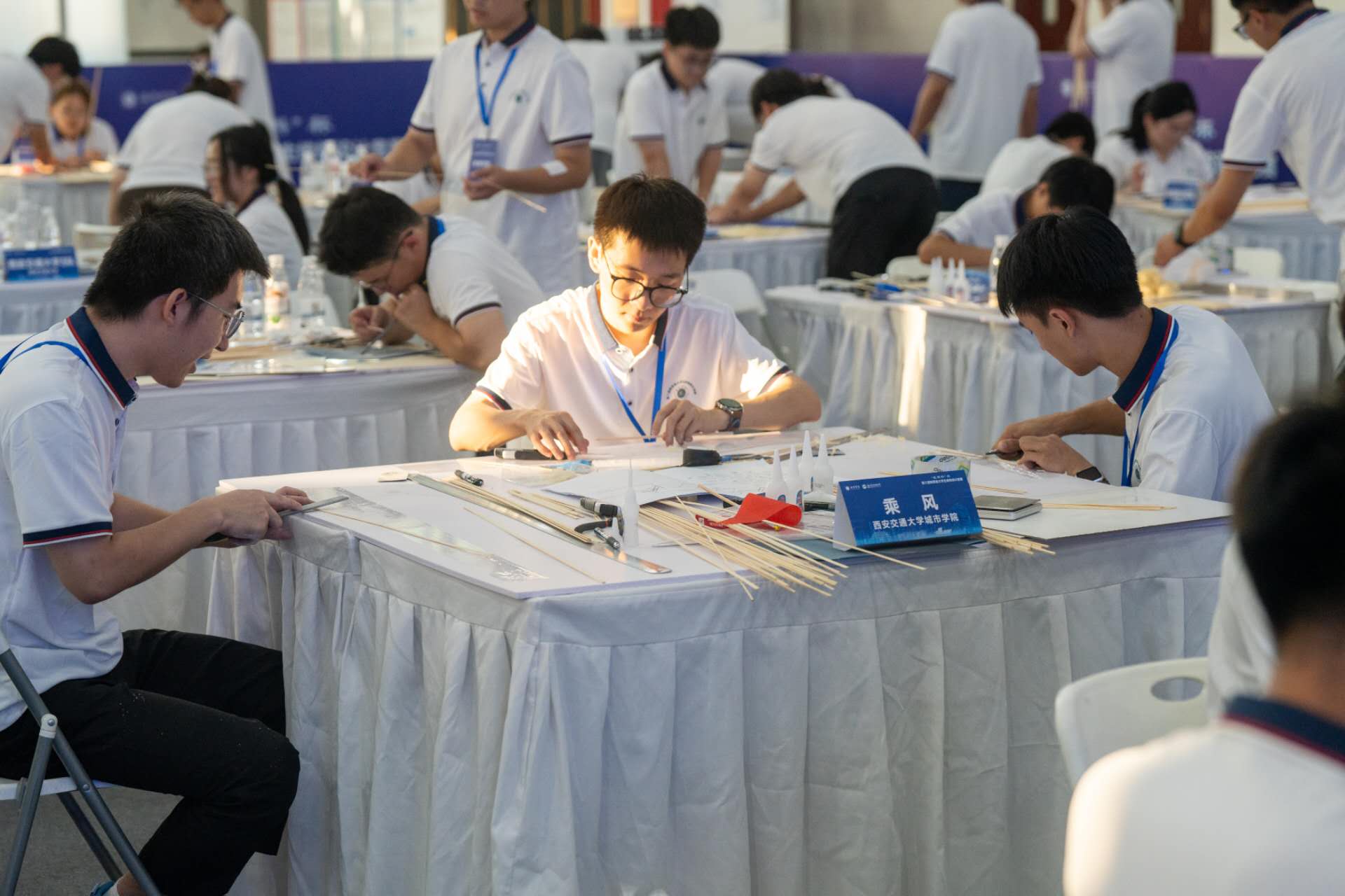 比赛现场,参赛队员沉着应赛,顺利完成模型制作、称重、答辩和加载试验等环节,最终两支队伍均成功完成加载测试,“苍蓝星”队凭借精湛的模型制作工艺获得最佳制作奖,在同类院校中位居前列。
