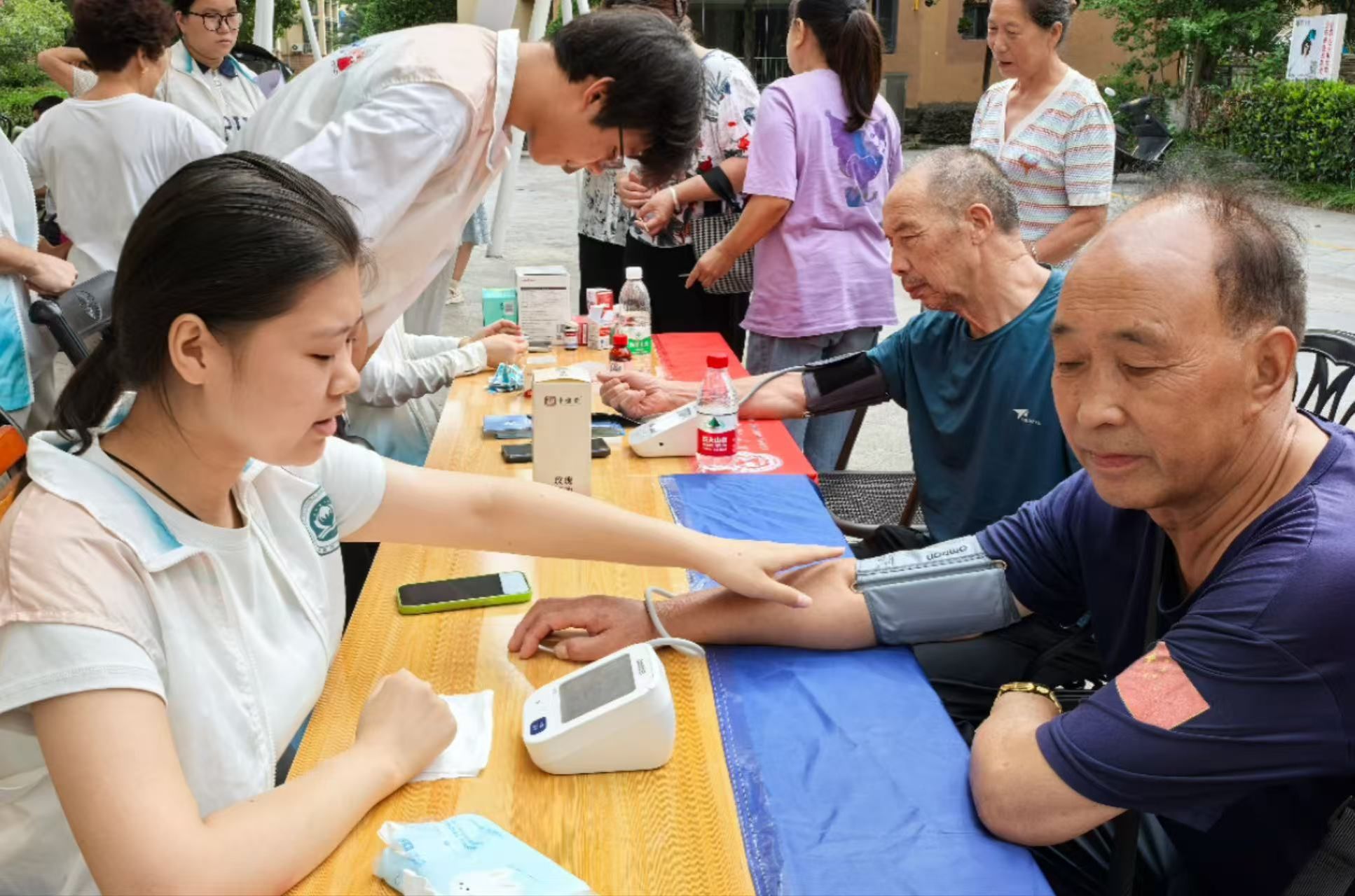 队员们发挥医学专业特长,为居民提供血压测量、血糖检测等基础医疗服务,详细询问既往病史与生活习惯,针对高血压、糖尿病等常见病患者,耐心讲解用药规范与饮食禁忌,给出个性化健康建议。