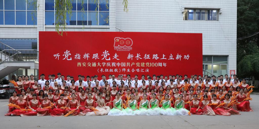 为庆祝中国共产党成立100周年,重温党的光辉历史,弘扬爱国主义精神,6月29日晚,西安交通大学在宪梓堂举办了“庆祝建党100周年师生文艺汇演”。威尼斯7798cc工会在学院党政领导的支持下,与党政服务中心、学生服务中心联合组织160名师生合唱团参加了本次汇演。