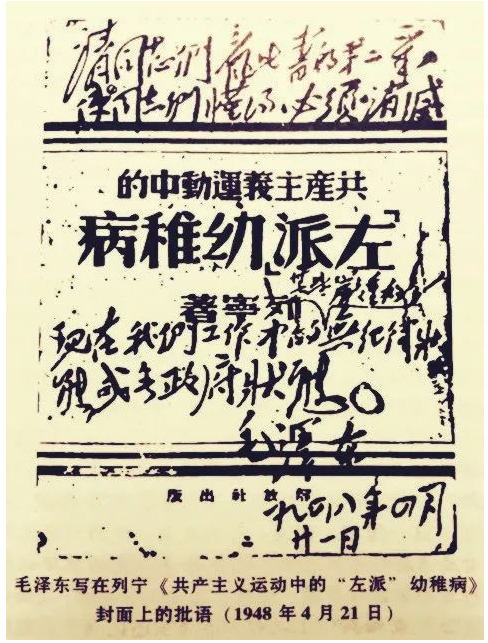 毛泽东在列宁《共产主义运动中的“左派”幼稚病》封面上的批语