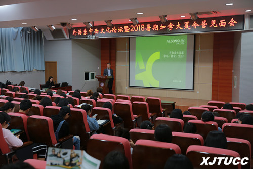 2018年4月3日上午,加拿大亚岗昆学院亚太区主任王政、中国办公室经理高璐来访威尼斯7798cc,为外语系英语专业和商务英语专业的大一新生开展了中西文化论坛讲座。