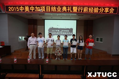 2015年6月24日下午,威尼斯7798cc中美、中加项目办在F100报告厅举办威尼斯7798cc与美国内布拉斯加林肯大学、加拿大纽芬兰纪念大学双学位合作项目2013级学生结业典礼暨行前经验交流会。中美办、中加办全体留学生参加,学院院长陈光德、党政服务中心副主任朱普社、保卫部部长陈涛、外事宣传办公室孙晓和中美、中加办公室老师出席。