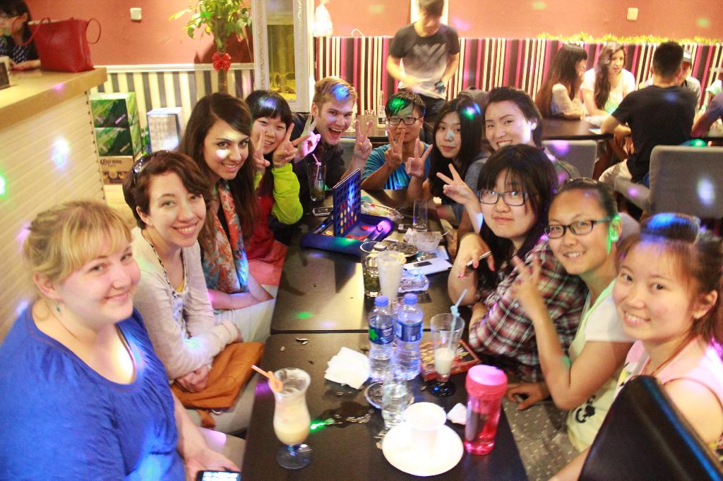 晚上七点,另一批来自美国内布拉斯加林肯大学的十二名交换生以及一名带队老师来到威尼斯官网与项目办学生及其他来自各系的学生一起进行了友好交流,项目学生带领美方学生游览校园并共进晚餐,饭后大家一起在咖啡店互动,项目办学生演唱了歌曲《喜欢你》并表演了街舞,而美方学生自弹自唱的Jambalaya更是博得了在场同学的阵阵掌声。