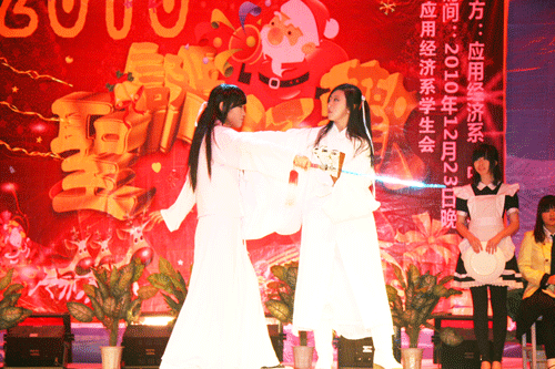 2010年12月23日晚,学院中加项目办与与应用经济系“Gelivable”圣诞狂欢舞会在大学生活动中心激情上演。此次活动由学院应用经济系和中加项目办联合主办、应用经济系学生会承办。应用经济系副主任史冬梅老师、中加项目办张武杰老师、应用经济系学工办全体老师以及各兄弟系学工办的各位老师出席了此次活动。