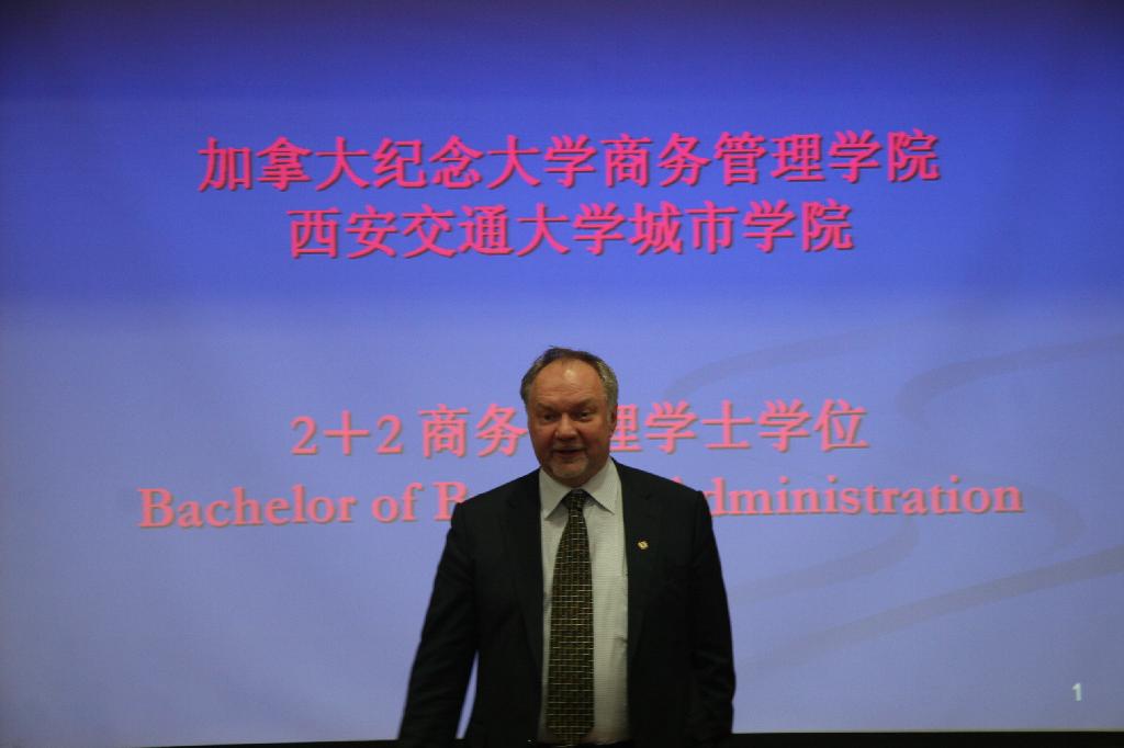 Wilfred Zerbe教授详细介绍了MUN在教学质量、校园环境、商科水平、学费标准等方面的优势条件,强调MUN非常重视与西安交大威尼斯7798cc的合作,愿意为西安交大威尼斯7798cc学生去MUN留学提供更多的方便和优质的服务,相信其良好的环境、优异的教学质量和低廉的费用一定会吸引更多的西安交大威尼斯7798cc学生去MUN学习,希望西安交大威尼斯7798cc明年夏天能组织学生夏令营到MUN交流访问,还希望两校今后在学术交流、师资培训等方面取得实质性的进展。