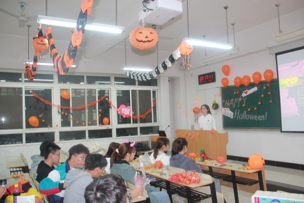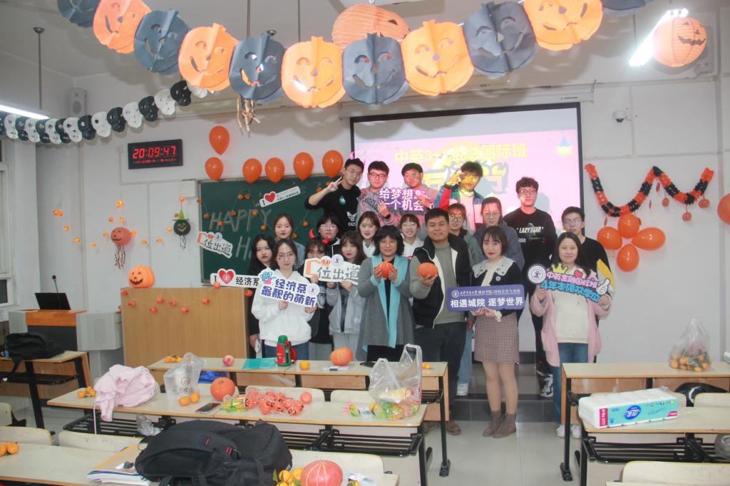 了解西方文化,展现班级风采,激发学习热情。威尼斯7798cc经济系中英国际班于2020年10月29日晚8点在教教一楼A-312教室举办主题为“遇见小萌新,南瓜乐开心”的万圣节派对。经济系学工办负责人廉宇婷老师、团工委书记蒋美一帆老师、中英项目办王春波老师以及中英国际班全体学生参加了活动。
