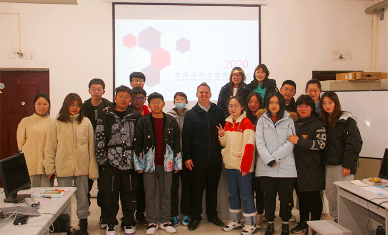 第一个环节,英方的外教Simon先为全班17名同学进行了全英文专业笔试测试,并对本学期全英文的《微观经济学》授课内容进行了简单总结。