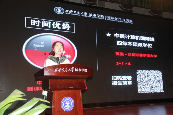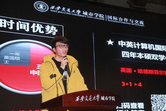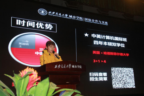 哈德斯菲尔德大学驻陕办公室杨超老师就学院中英国际班创办的开班理念、课程设置、学生培养、学制管理等情况进行了详细介绍,并对英国哈德斯菲尔德大学身为百年名校的优秀校史进行了概述,衷心希望城院更多优秀学生可以有机会赴英留学、就业、实习、甚至进行博士深造,为自己的大学四年创造无限可能。