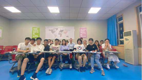 最后,外教Simon对每位同学在本学期坚持上课、虚心提问的学习态度表示了肯定,他也寄语同学们在将来的学习生活中要继续保持勤劳努力的精神,认真学习好英语,为日后去英国留学打好坚实的基础,希望还有机会与同学们见面。结束前,外教Simon与金融国际班17名同学合影留念。
