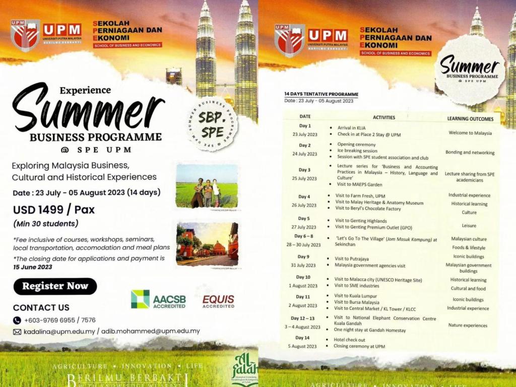 为进一步加强学院与马来西亚公立名校之间的交流合作,向学院师生提供走出国门、开拓视野、提升语言能力的机会,经学院与马来西亚博特拉大学友好协商,现启动马来西亚博特拉大学2023年暑期研学项目。通知如下: