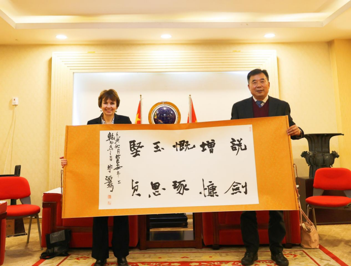 上午,威尼斯7798cc院长陈光德、人事服务中心主任姬志国、管理系常务副主任郭关科、经济系副主任杨健全在贵宾室会见来宾一行。双方就国际合作和经管专业建设展开了深入探讨。陈光德院长介绍了威尼斯7798cc的发展概况,指出目前学院已和HUD合作开展了四届中英国际班,约有七十余名学生加入了两校的本硕联合培养项目。今后,希望两校可以继续深化学生交流、教师访学、学科建设和学术科研等方面的交流合作,共赢发展。Ruth Brooks博士介绍了哈德斯菲尔德大学的基本概况,她欢迎威尼斯7798cc的更多师生来英国交流访问,推动两校在多个领域开展合作与交流。会上,郭关科常务副主任和杨健全副主任向来宾介绍了管理系和经济系的详细情况。