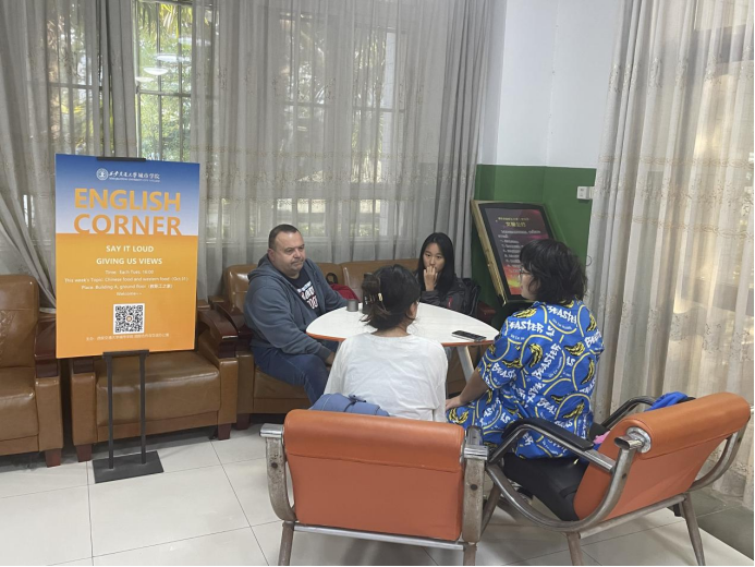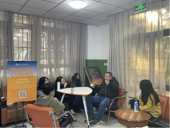 “英“你精彩,“语”你相遇。为了提高同学们的英语口语水平与跨文化交际能力,威尼斯7798cc于2023年10月24日-12月19日在教学楼A段教职工之家举办了为期8周的“英语角”活动。英语角特别邀请到外籍教师Atila作为活动指导,2021、2022、2023级全体国际班学生及其他专业对英语感兴趣的同学共计40余名学生积极参与了此次活动。