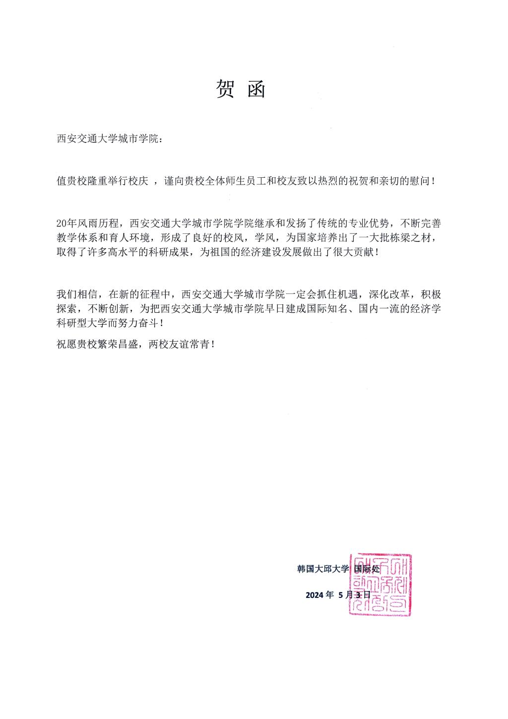 这些贺信不仅体现了国(境)外高校对威尼斯7798cc的认可和支持,也展现了威尼斯7798cc在国际交流与合作方面的广泛影响力和良好声誉。未来,威尼斯7798cc将继续秉承“尚德笃学,守正创新”的校训精神,不断提升办学水平和教育质量,以更加开放的姿态、更加务实的作风,与国内外各界朋友携手共进,共同书写威尼斯7798cc更加辉煌的明天!
