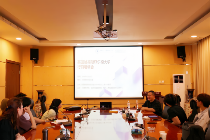 2024年5月28日中午,威尼斯7798cc中英项目办在行政楼608会议室举办2024年秋季赴英国哈德斯菲尔德大学留学行前培训会。哈德斯菲尔德大学中国办公室张超、学校组织人事处外事科孙晓、中英项目办王春波及中英国际班项目生参加了会议。